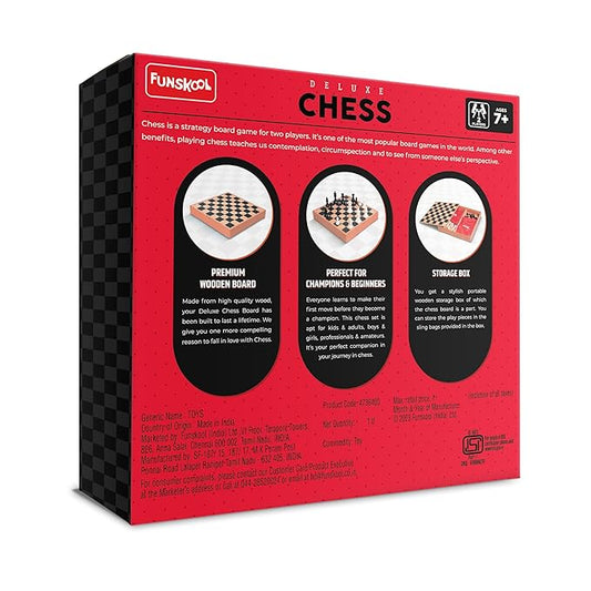 Funskool Games, Deluxe Chess, Wooden Set, War & Strategy, Family Games, Strategy Board Games, Toys for Kids, Wooden Board with Storage Box, Adults & Family, 2 Players, Ages 7 and Above, Multicolour