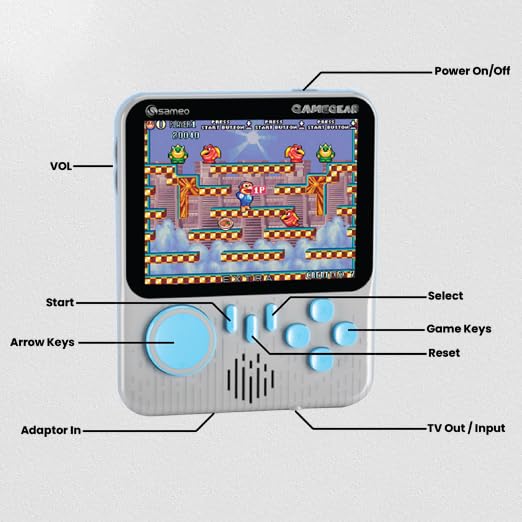 Sameo Gamegear Handheld Video Game Console, Retro Mini Game with 666 Classic Retro Game TV Compatible for Kids, Rechargeable 8 Bit Classi