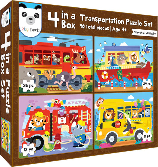 Play Panda – 4 in a Box Transportation Puzzle Set for Kids