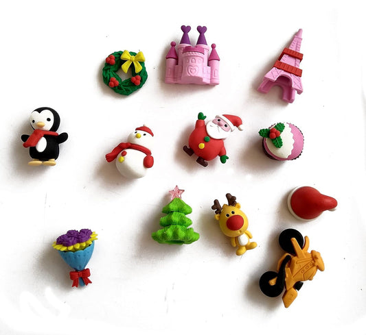Merry Christmas Character Advent Calendar with Different Character Collections Puzzle, Eraser Pencil Topper,Santa Erasers Stationery Gift for Children's (Set of 25 Pcs)