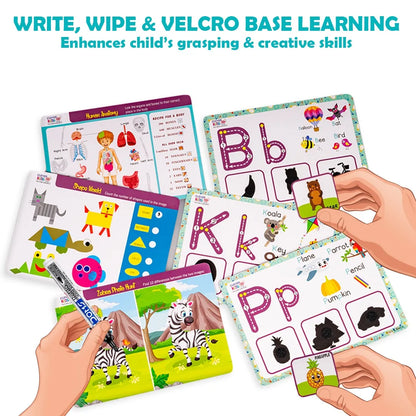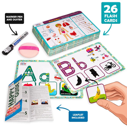 It Contains :– 78 Hook & Look cards– 56 Exciting Activities– 26 Flash cards– 1 marker & duster sponge & Leaflet *This preschool activity comprises of learning 26 Alphabet flash card, Sorting activity, Characteristic description, Guessing game.*This flash card made from high quality card paper, It's thick enough to last a long time.*Great educational toy for preschool activity, to understand thinking, perceive colors and to enhance logical knowledge.*Enhances Childs grasping & creative skills.