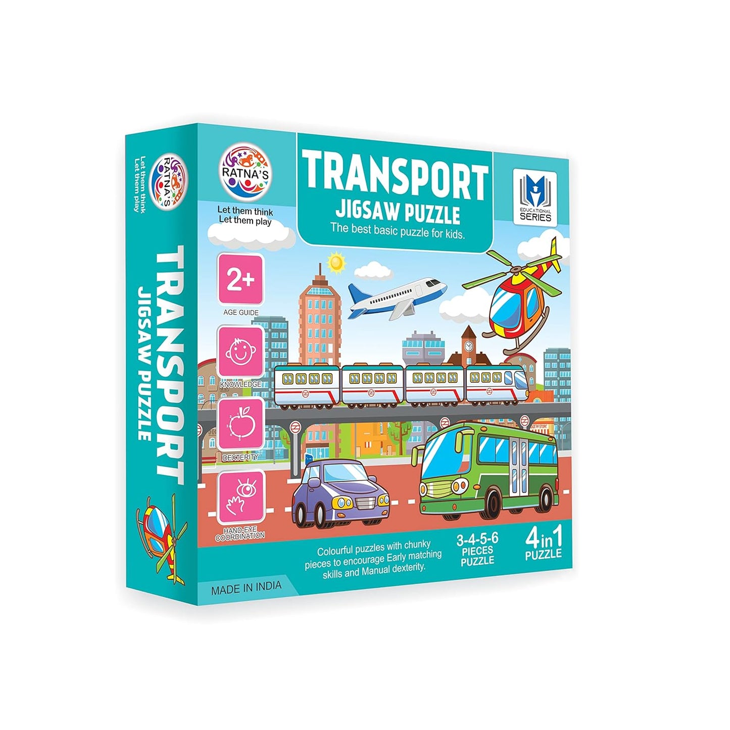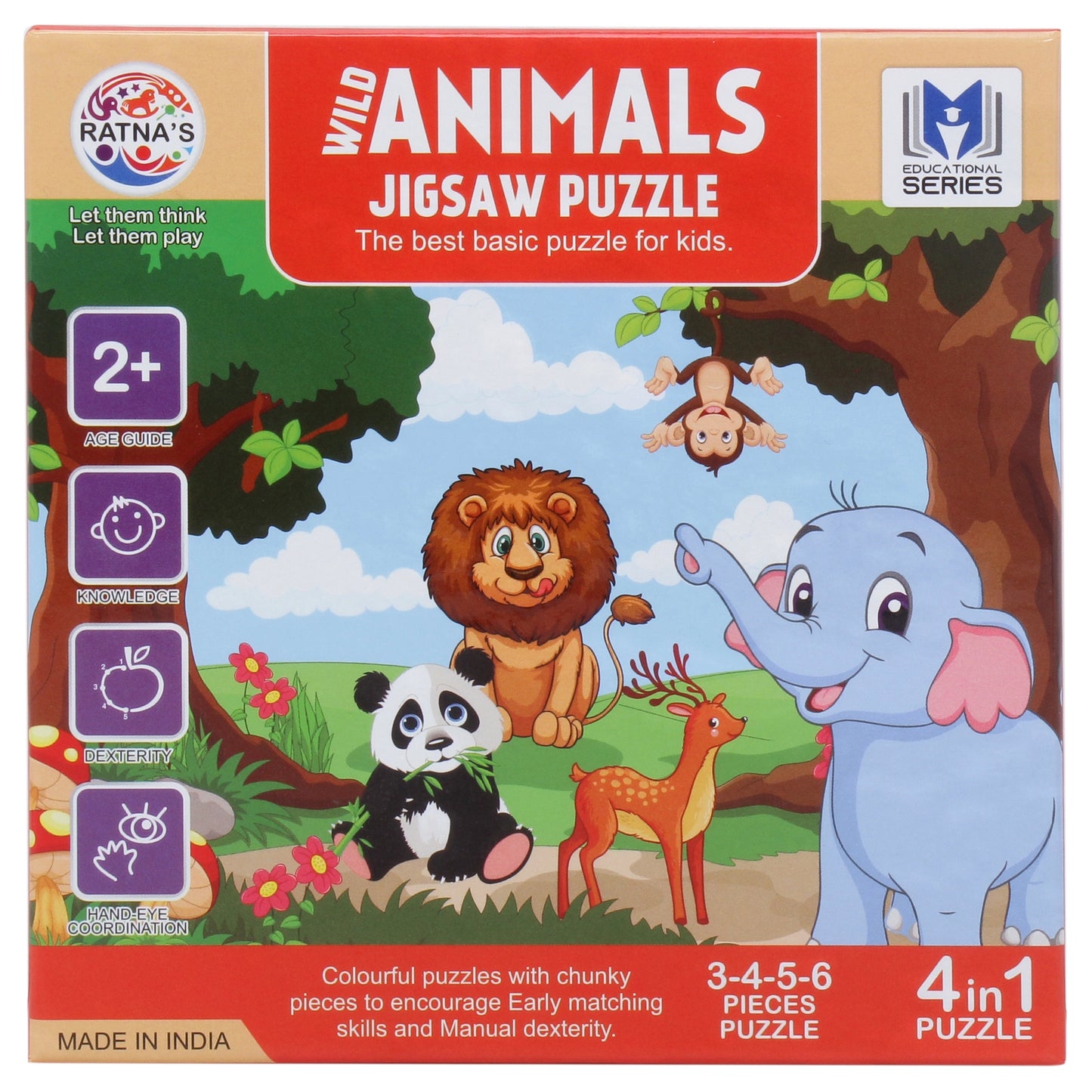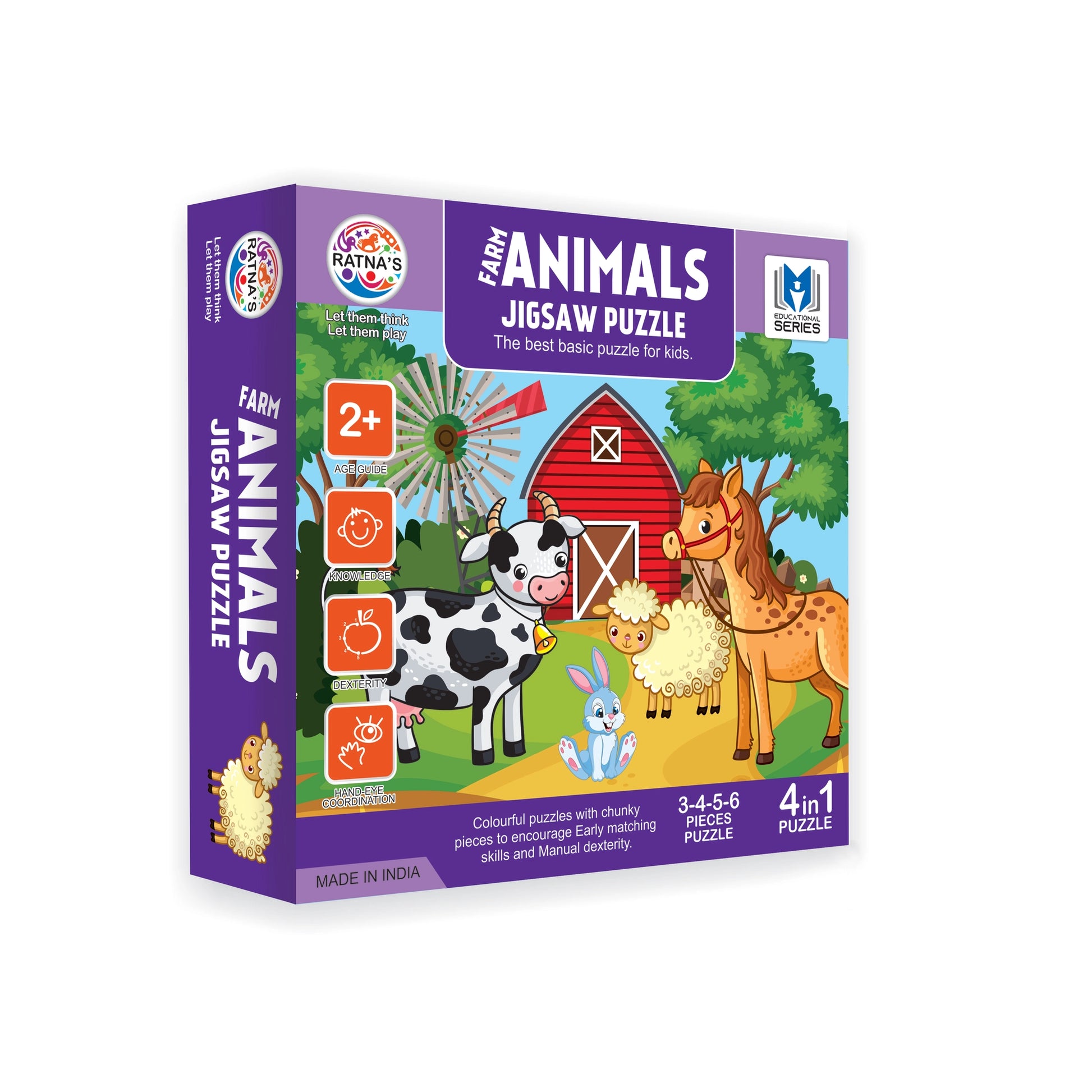 The Ratna's Jigsaw puzzle is a useful tool full of colors and shapes. The puzzle is used for enhancing knowledge, dexterity, and hand-eye coordination. The puzzle comes in 3 to 6 pieces.