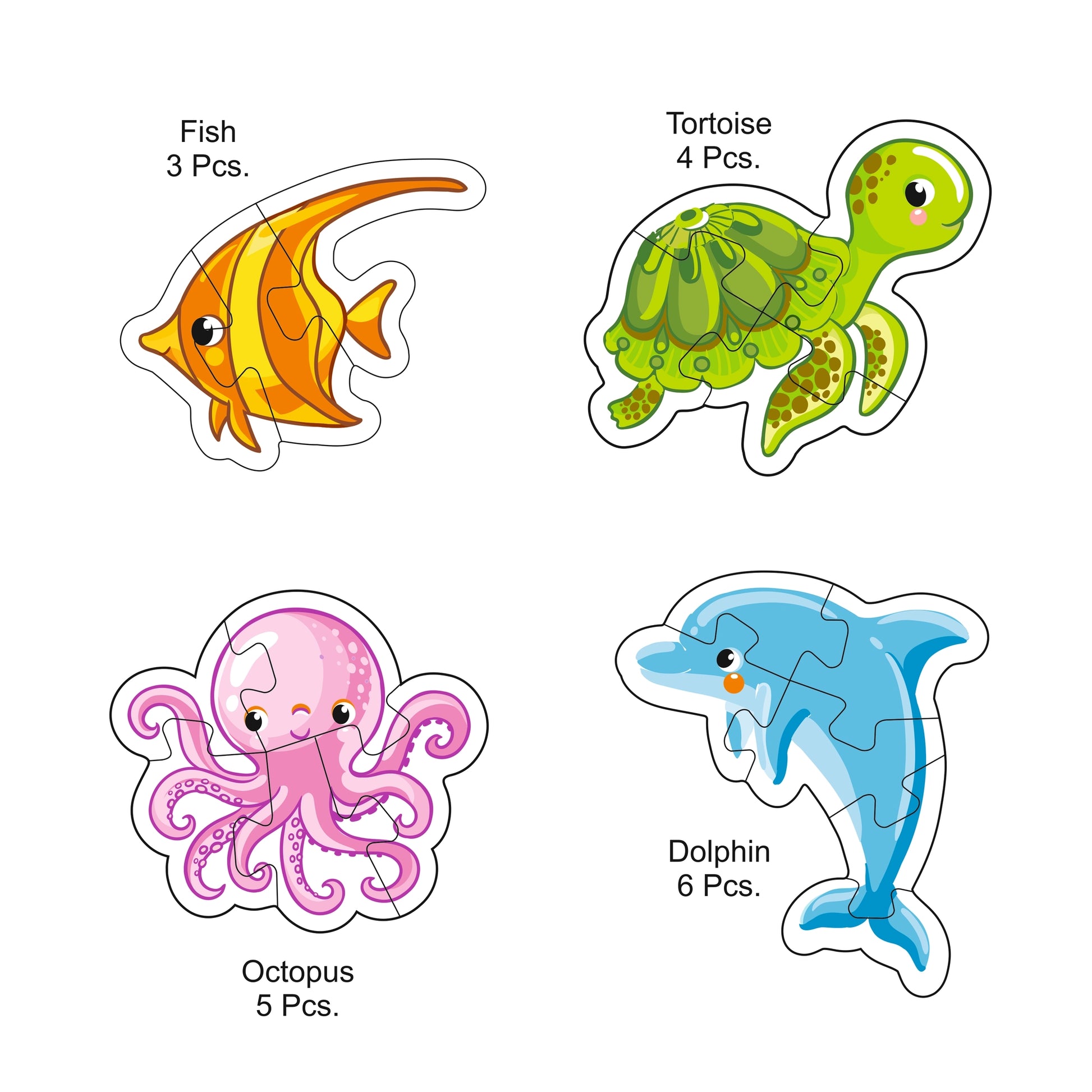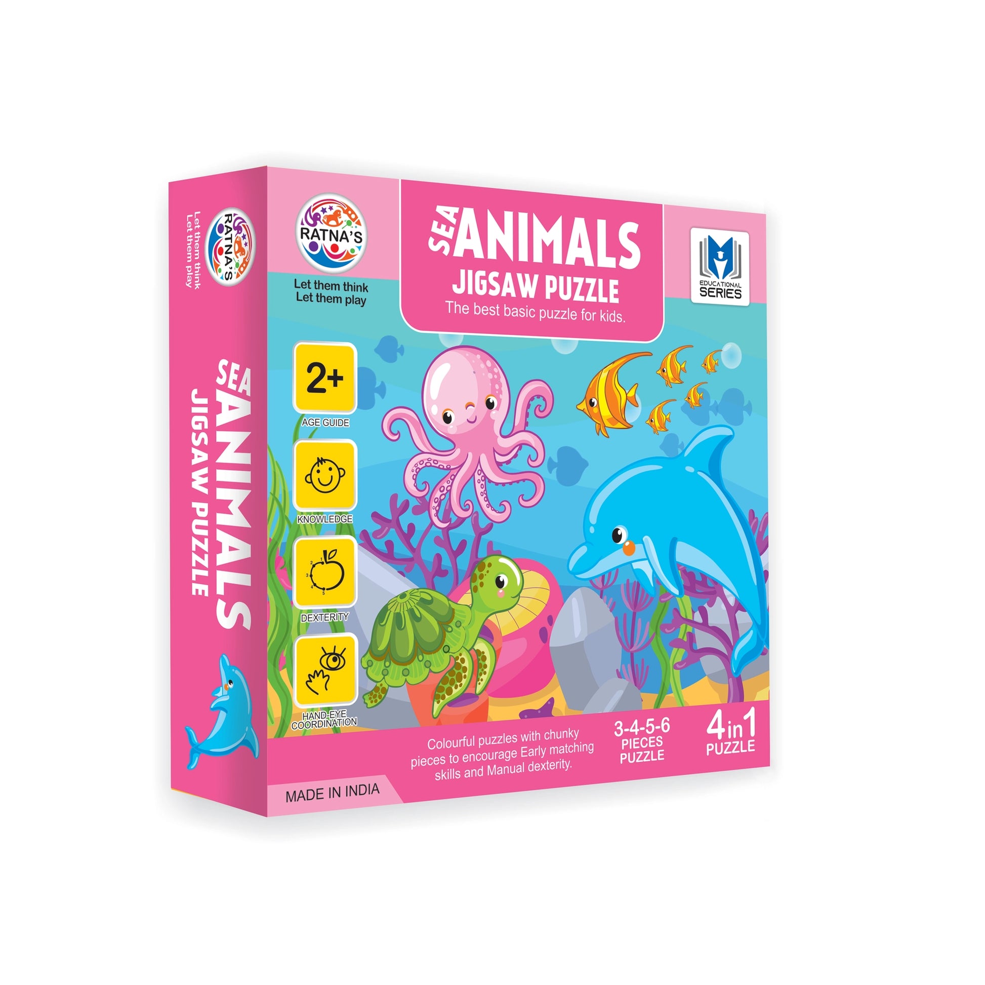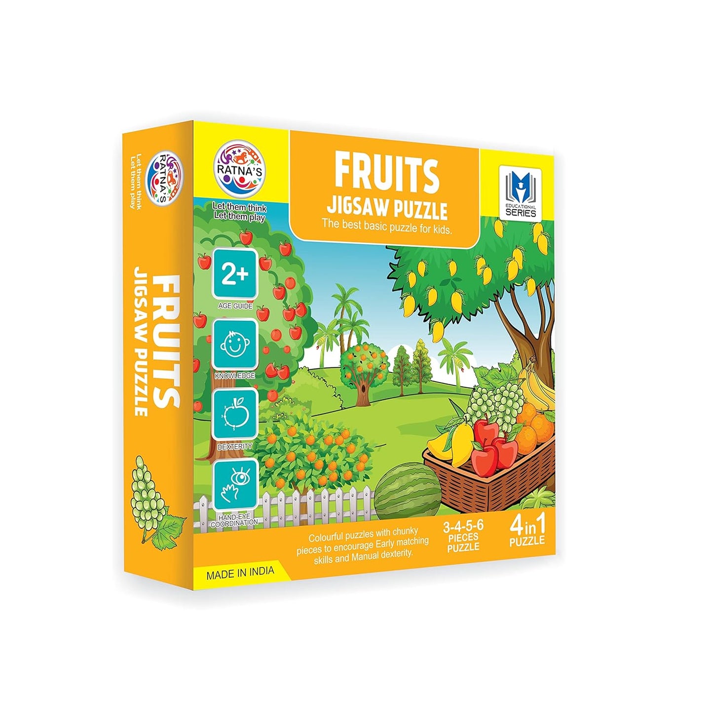 The Ratna's Jigsaw puzzle is a useful tool full of colors and shapes. The puzzle is used for enhancing knowledge, dexterity, and hand-eye coordination. The puzzle comes in 3 to 6 pieces.