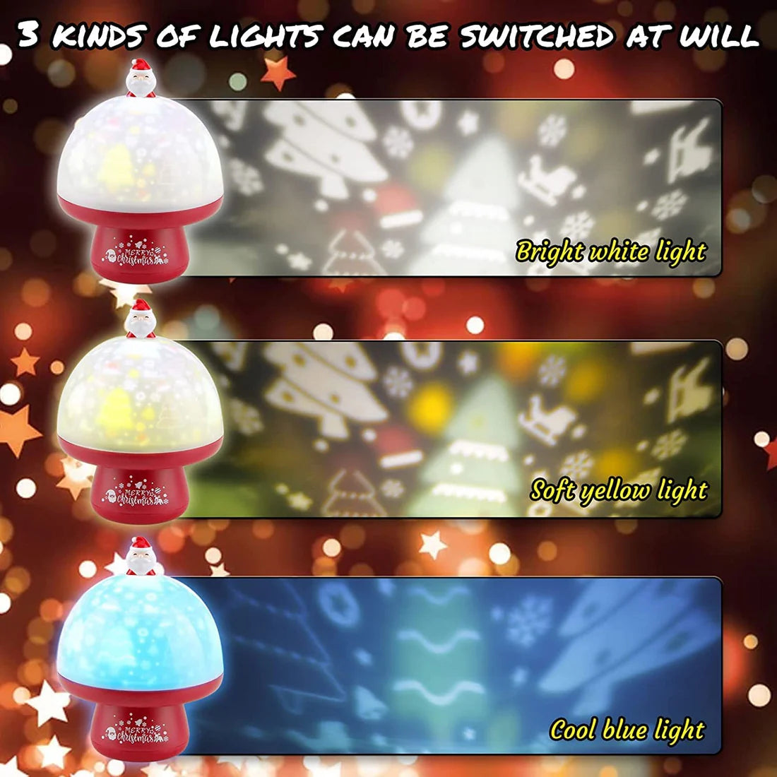 Christmas-Theme 3 in 1 Night Light Projector Lamp
