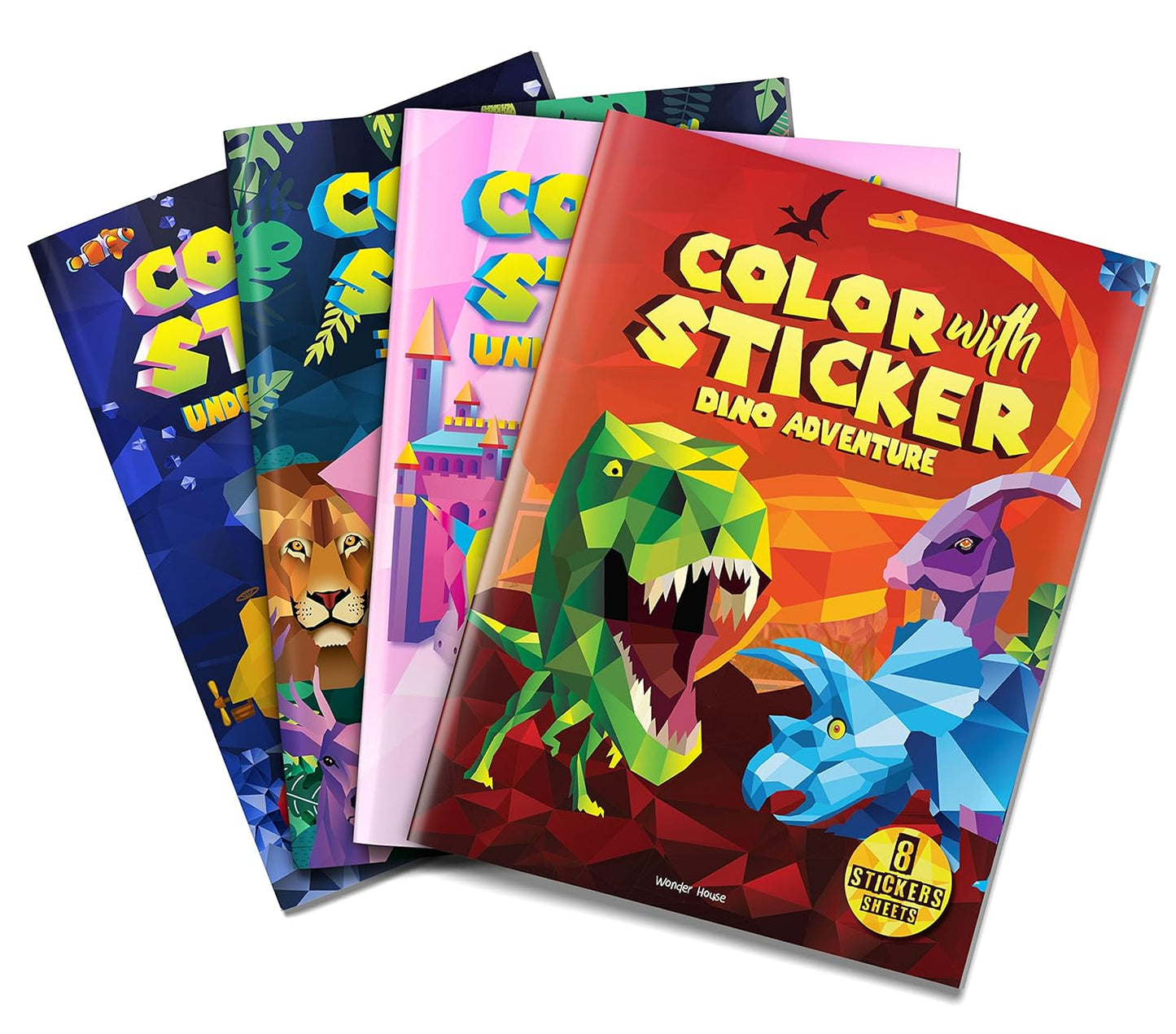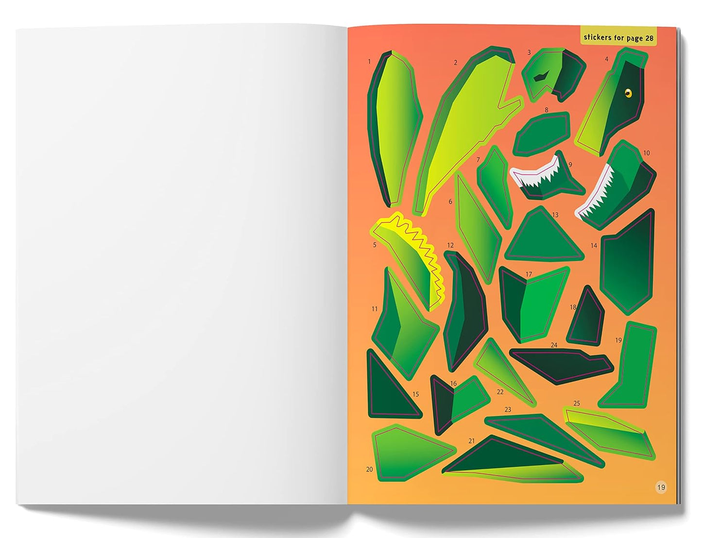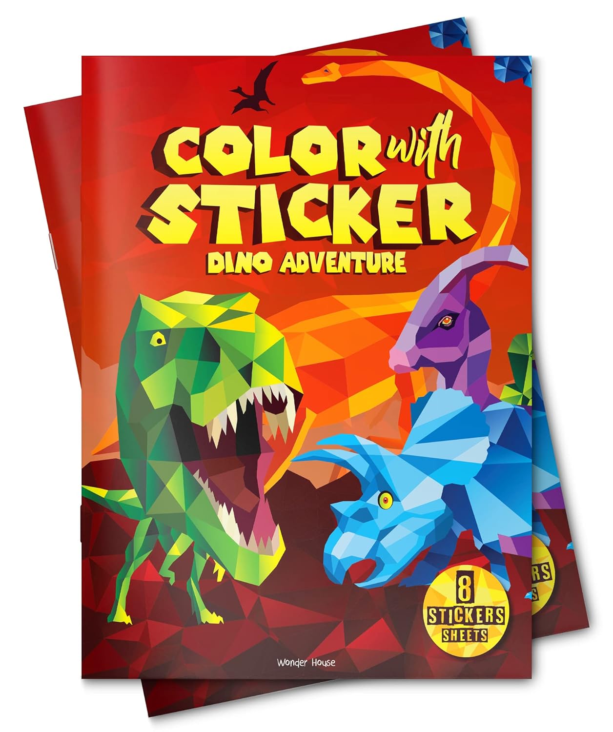 Put on your creative hats and create magnificent dinosaurs using this one-of-a-kind sticker book that allows budding artists to create unique works of art by pasting stickers. They can even color dinosaurs in ready-to-color images. This engaging and entertaining book with its gorgeous, geometric images will enhance their co-ordination and motor skills.