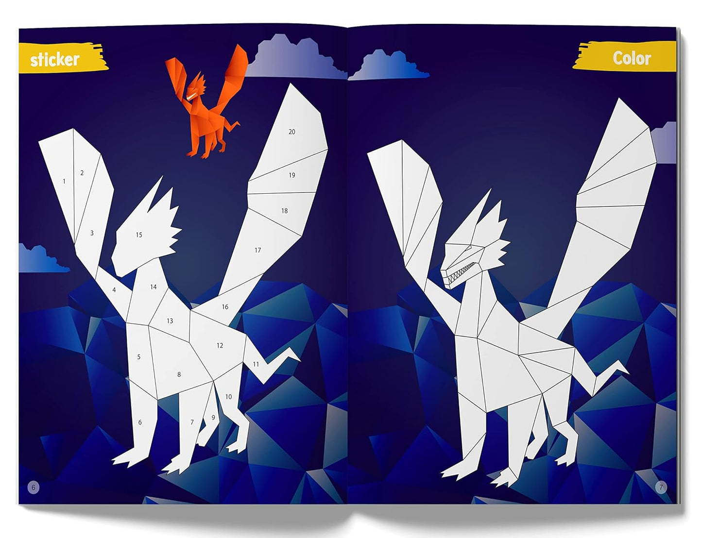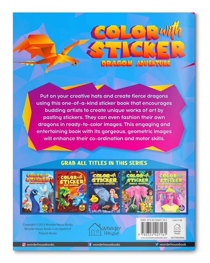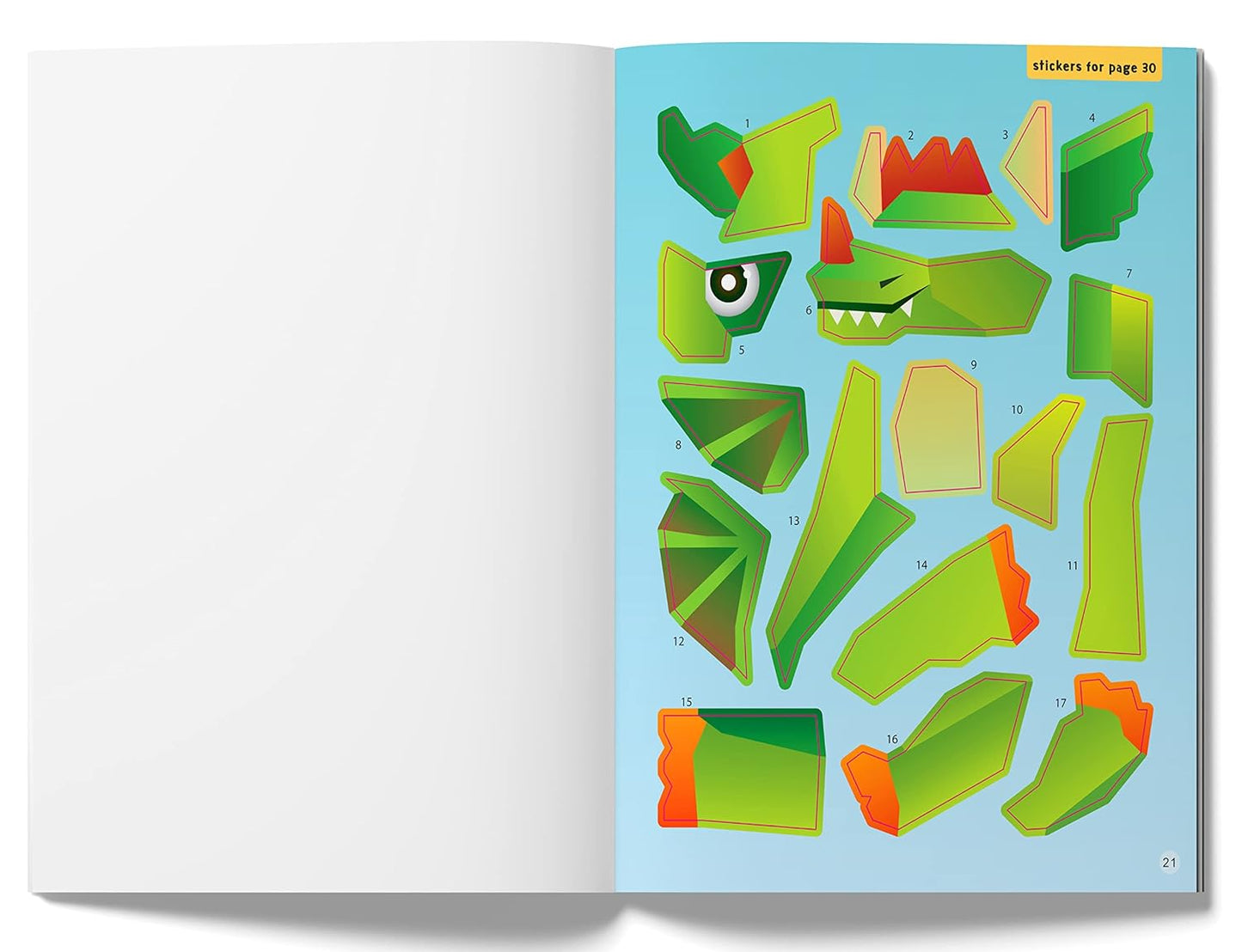Put on your creative hats and create fierce dragons using this one-of-a-kind sticker book that encourages budding artists to create unique works of art by pasting stickers. They can even fashion their own dragons in ready-to-color images. This engaging and entertaining book with its gorgeous, geometric images will enhance their co-ordination and motor skills.