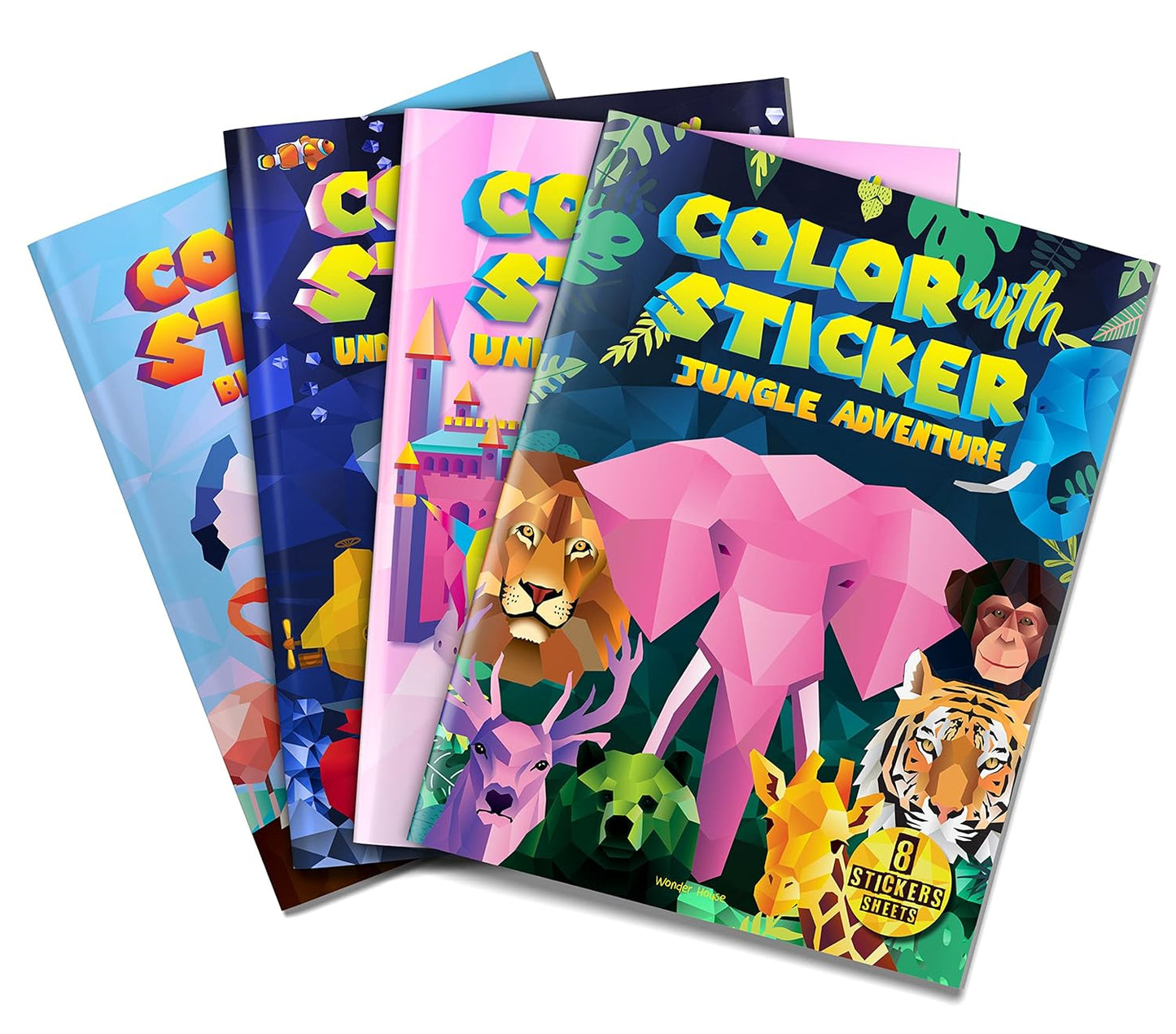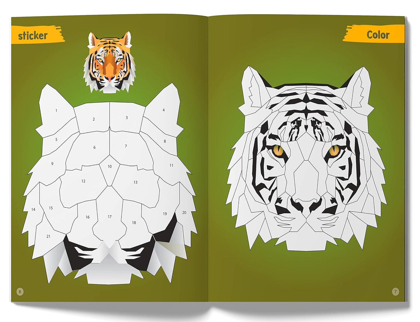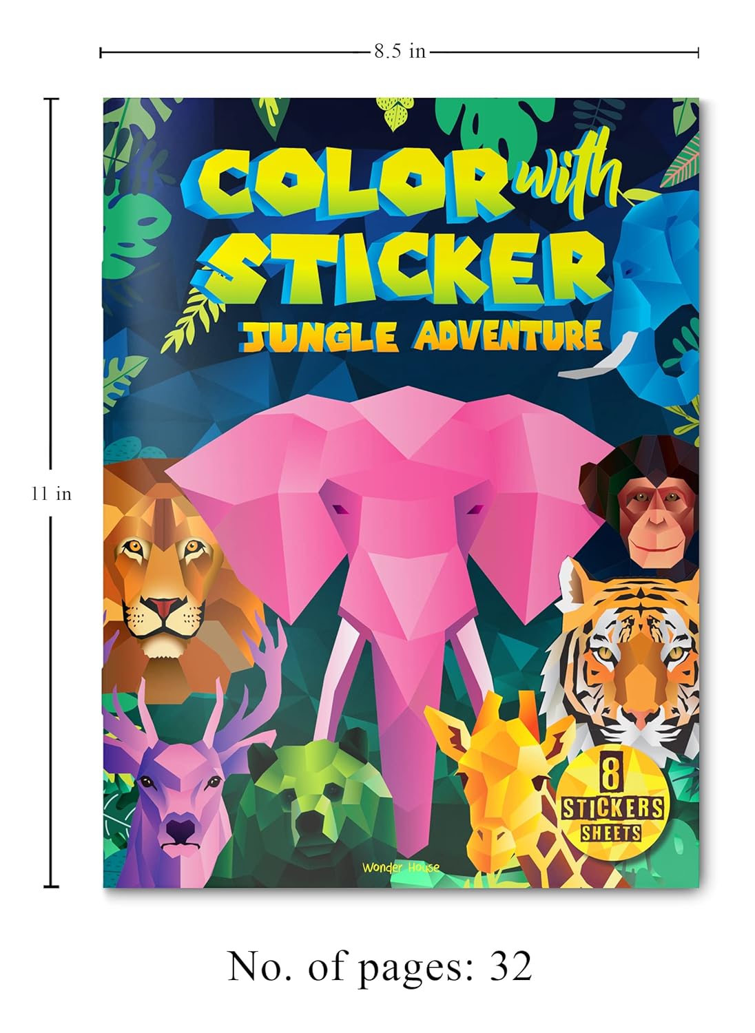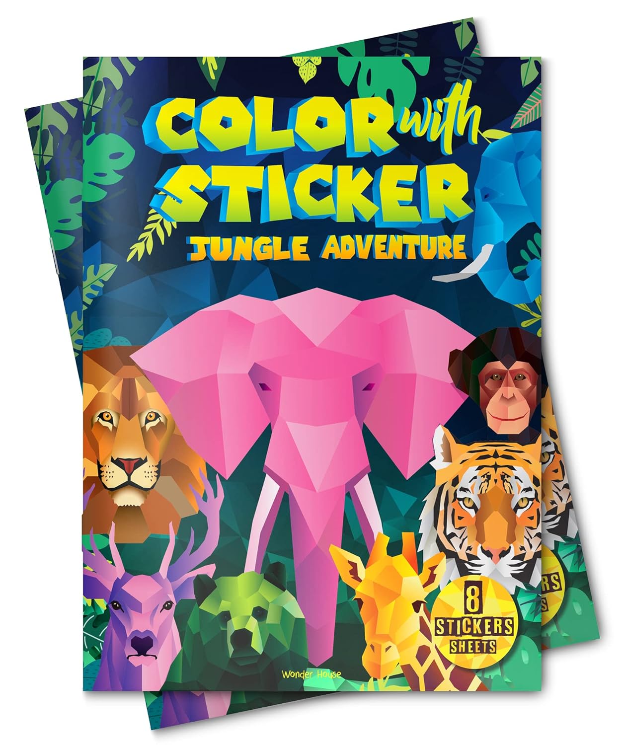Put on your creative hats and create beautiful jungle animals using this one-of-a-kind sticker book that encourages budding artists to create unique works of art by pasting stickers. They can even make animal portraits with ready-to-color images. This engaging and entertaining book with its gorgeous, geometric images will enhance their co-ordination and motor skills.