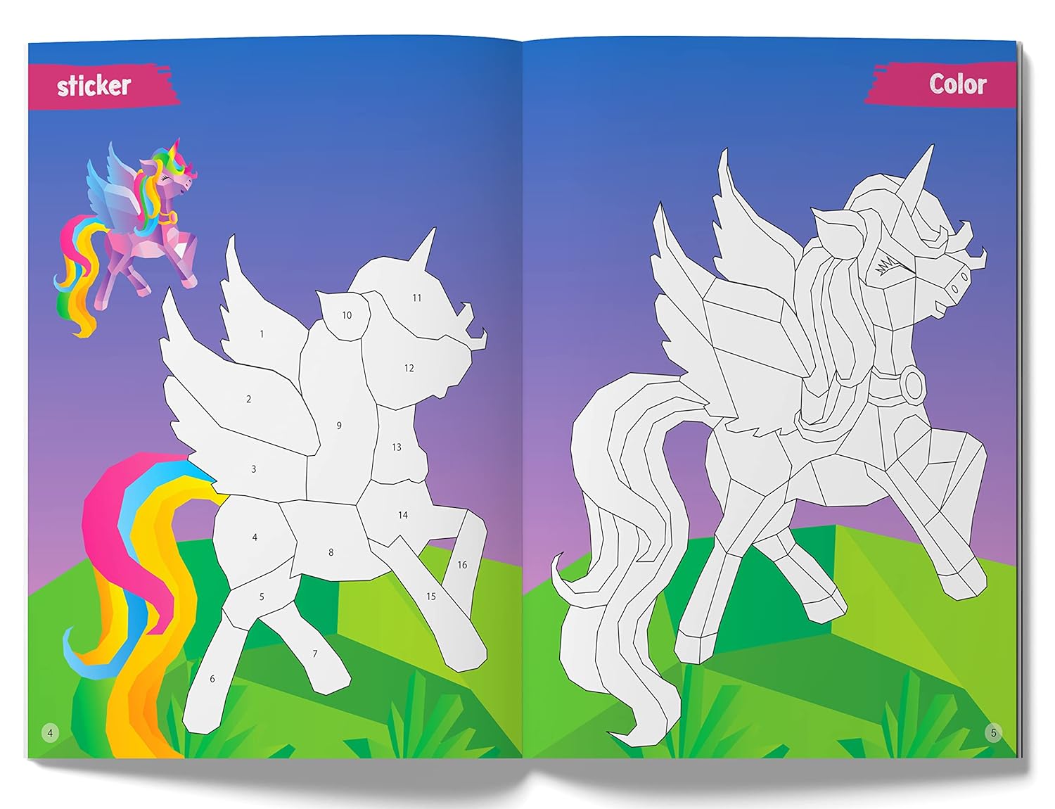 Put on your creative hats and create magical unicorns using this one-of-a-kind sticker book that encourages budding artists to create unique works of art by pasting stickers. They can even create gorgeous unicorns with ready-to-color images. This engaging and entertaining book with its gorgeous, geometric images will enhance their co-ordination and motor skills.