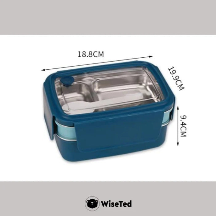 Stainless Steel Construction: Crafted from premium quality stainless steel, our lunch box is highly durable and resistant to rust, stains, and odors. It guarantees that your child's food remains safe and uncontaminated throughout the day. Stainless steel is also a sustainable material, making it an eco-friendly choice for conscious parents.