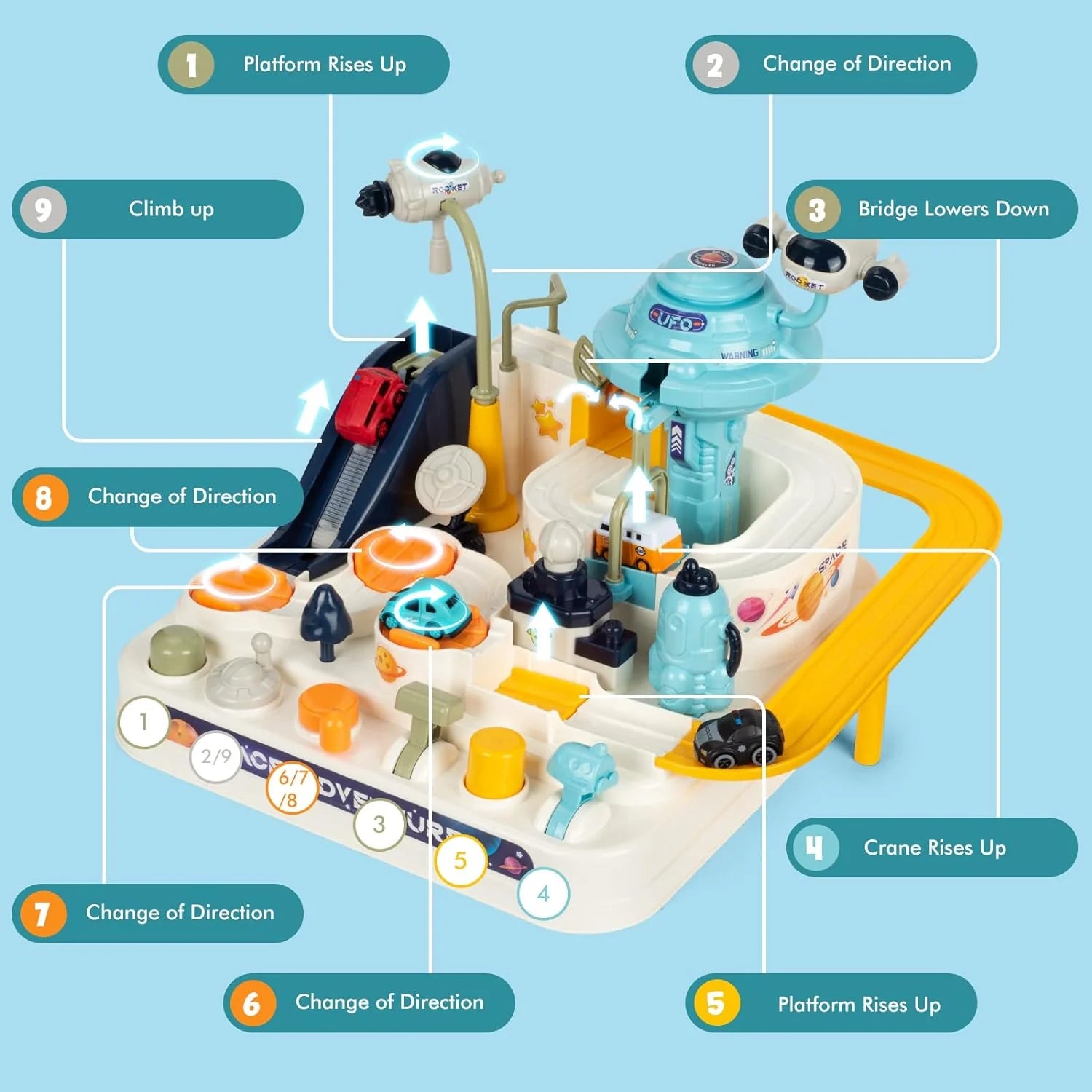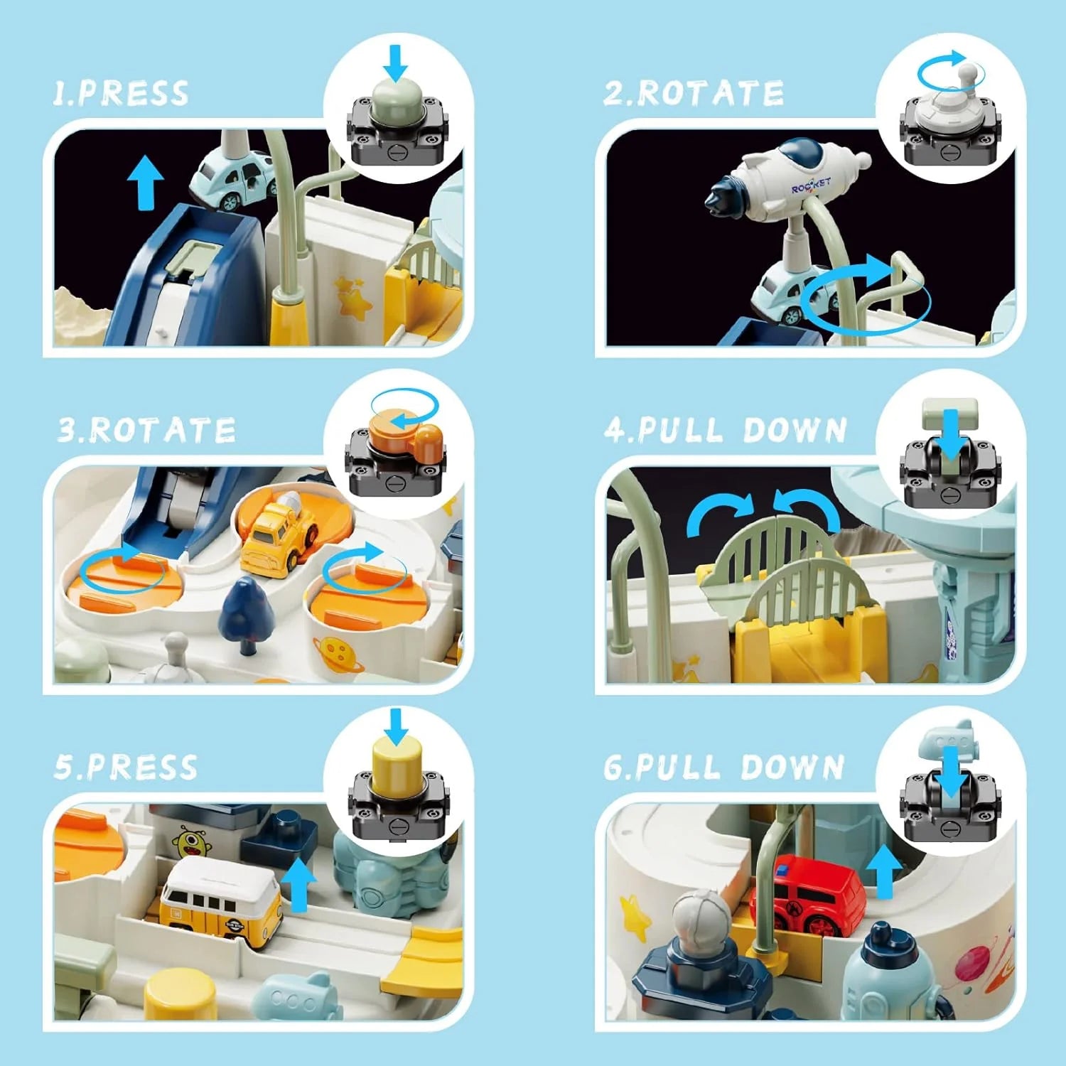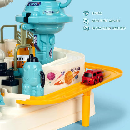 Interactive Space Adventure Theme: Engaging space-themed car track set to spark the imagination of young boys. Vibrant colors and attractive designs to capture their attention.