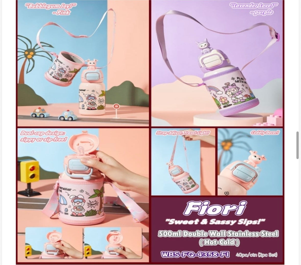 The Fiori “Sweet & Sassy Sips” Bottle combines functionality, durability, and charm — making it the perfect hydration companion for little ones.