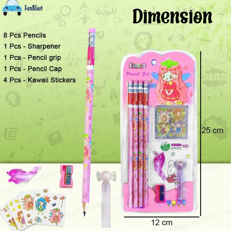 Plastic, Graphite ※HB ※Pencil*8+sticker*12+pen holder*1+pencil sharpener*1+pen cap*1 ※