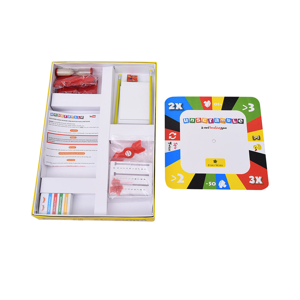 Unscramble game is designed to increase the vocabulary of children. In this game a child is required to break a big word into many small words. This activity will increase the presence of mind and concentration of children as they have to do this within a given time of one minute.