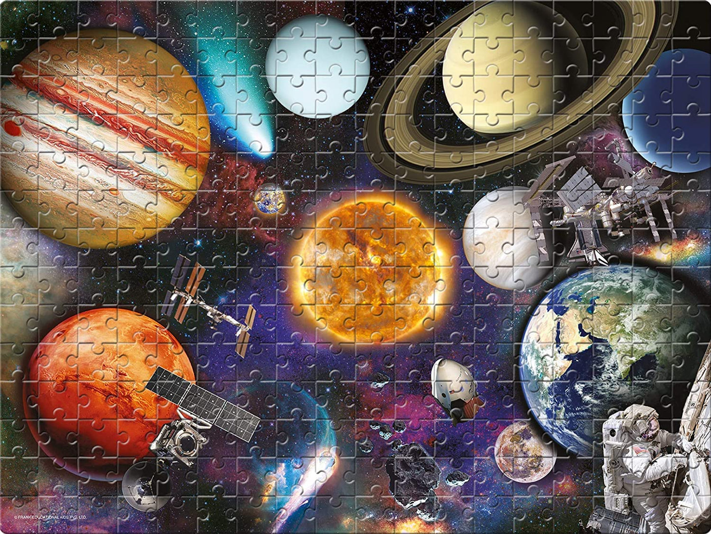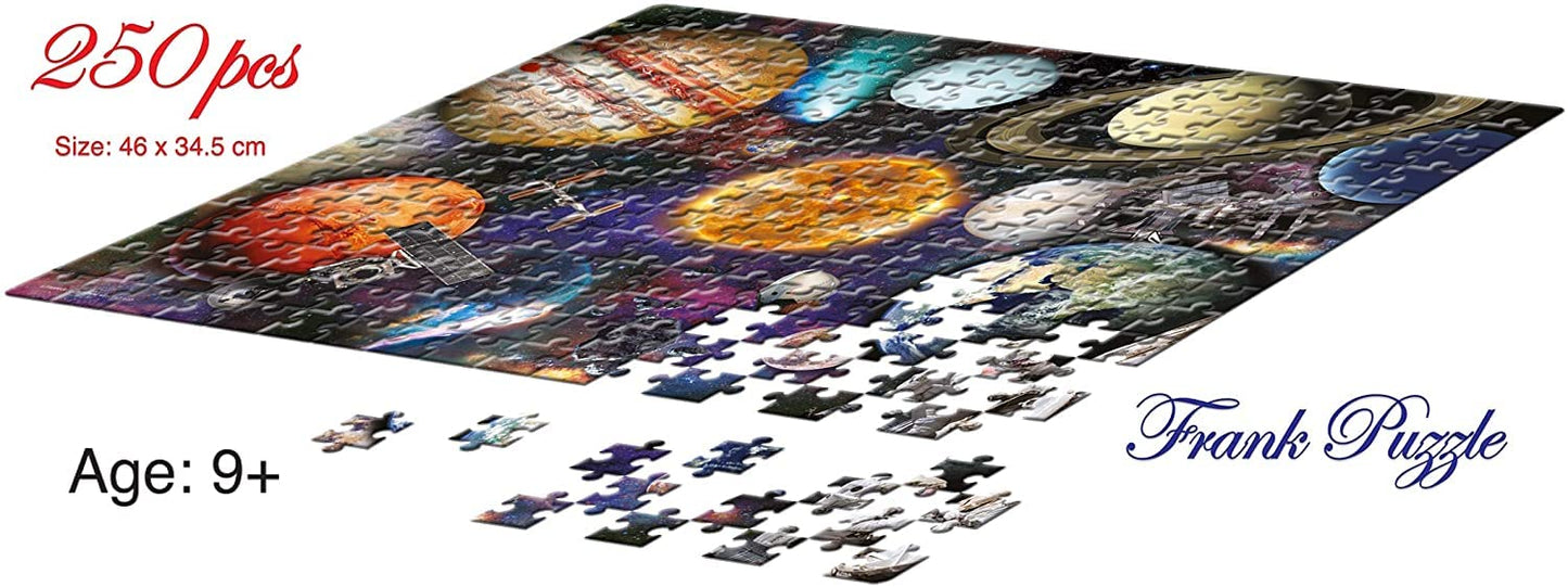 - What You Get: Our jigsaw puzzles are suitable for adults and children older than 9 years old. The puzzle is comprised of 250 pieces, measures 46 x 34.5 cm, and has an eye-catchy space depiction with planets, astronauts, and spaceships that will make a unique addition to your home.