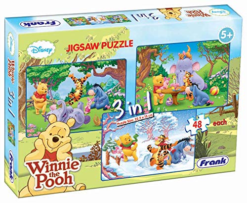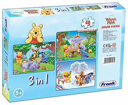 - A set of 3 cardboard jigsaw puzzles based on the popular children's character Winnie the Pooh, and his friends.