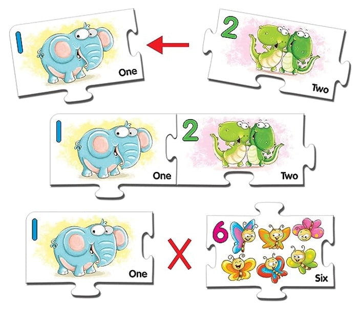 - PLAY & LEARN: This jigsaw puzzle can help children concentrate better, boosting their motor skills. The jigsaw set uses graphical, colour-rich representation of the alphabets along with animals or objects, to help children recognize and recall easily—synonymous with learning concepts at preschools, playschools. Such floor puzzles are recommended for learning environments at home and school as they can improve hand & eye coordination.