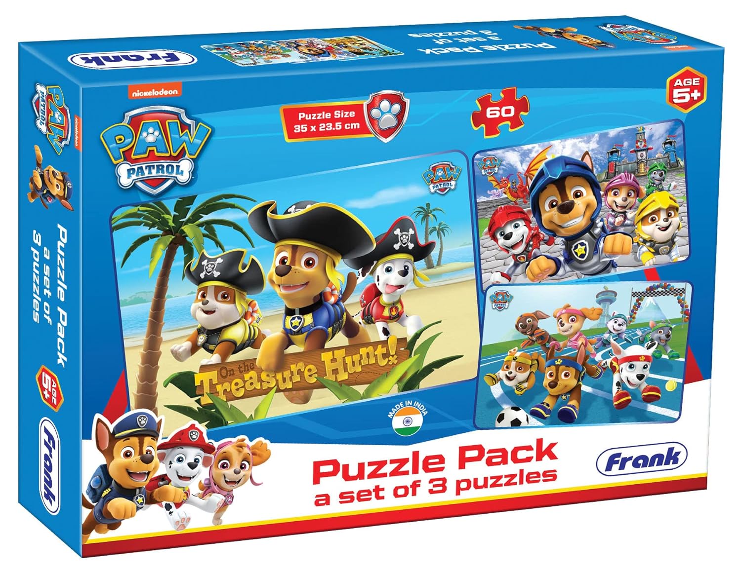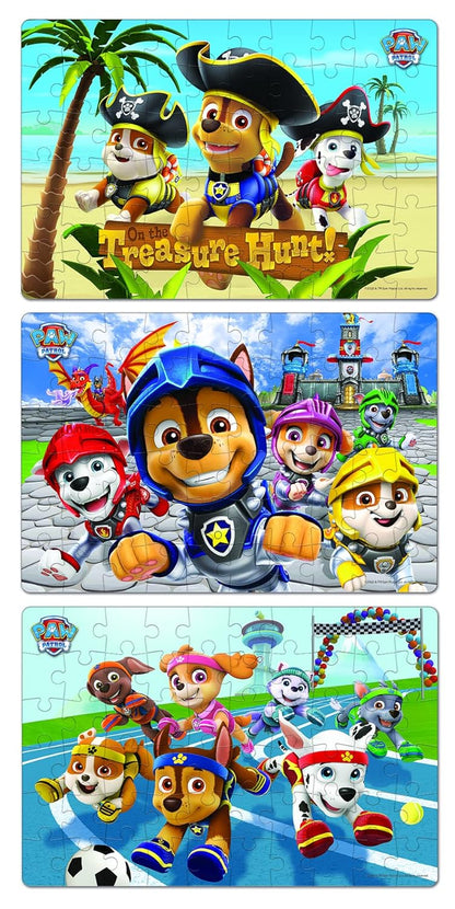 - A set of 3 cardboard jigsaw puzzles based on the characters from the popular children’s animated series Paw Patrol.
