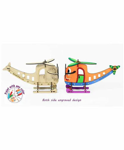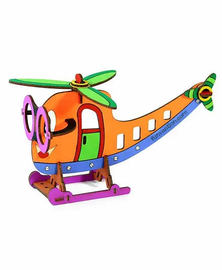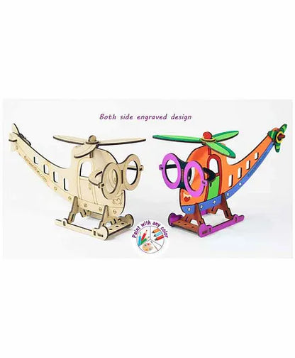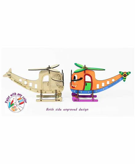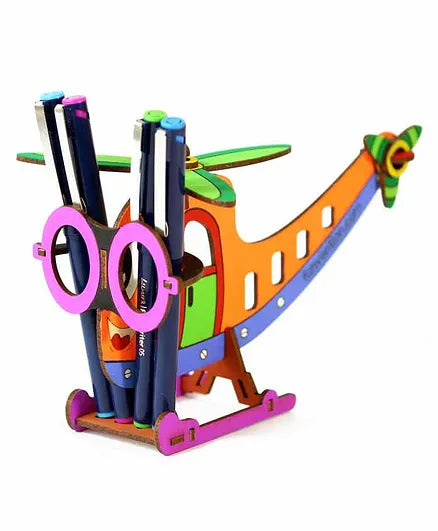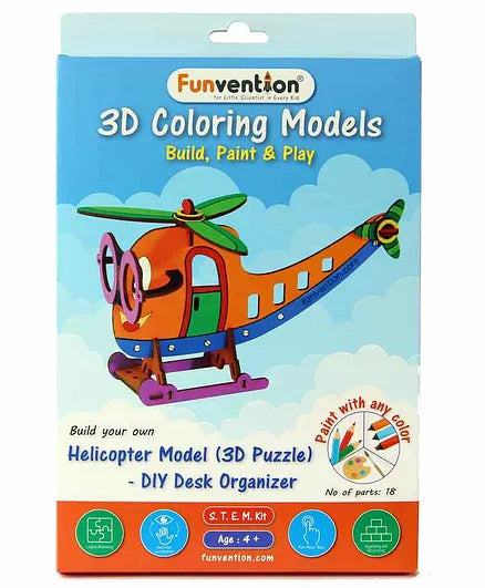Funvention Helicopter - 3D Coloring Model - DIY Desk Organizer Pen Stand - STEM Leanring 3D Puzzle Toy -Art, Coloring and Painting Kit for Kids