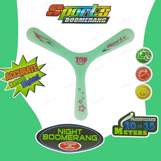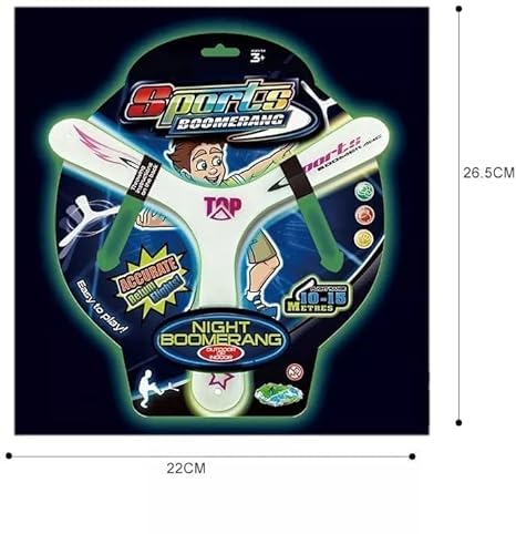 - ๐ Innovative Y -Shaped Design with Glowing Material: Boomerang's unique Y-shaped design ensures an exciting return flight. Crafted with special glow-in-the-dark materials for enhanced visibility during evening play. Ideal for air spinner flying toy boomerang enthusiasts.
