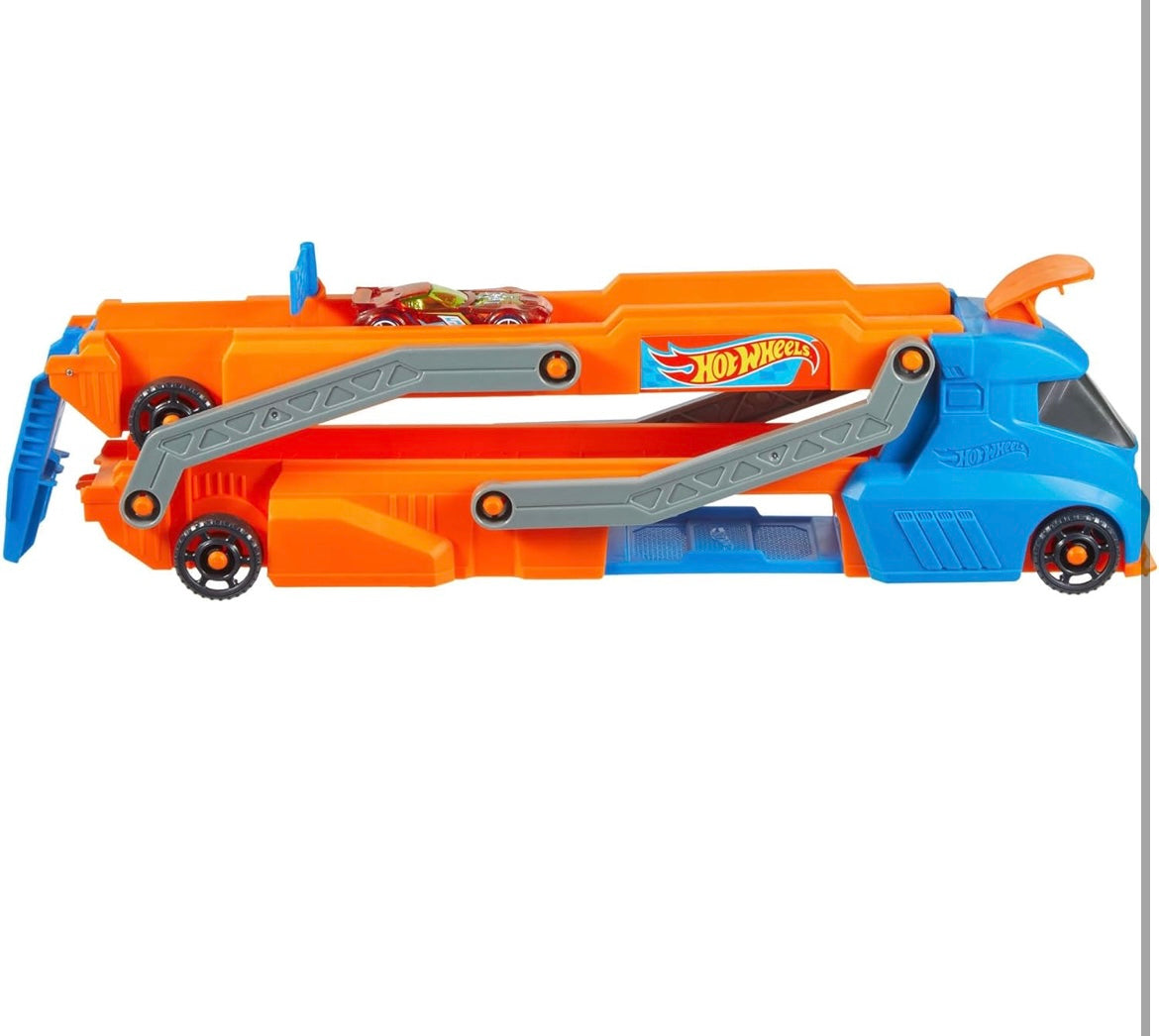 - Load up favorite Hot Wheels cars and drive through Hot Wheels City with the Speed Track Transporter!