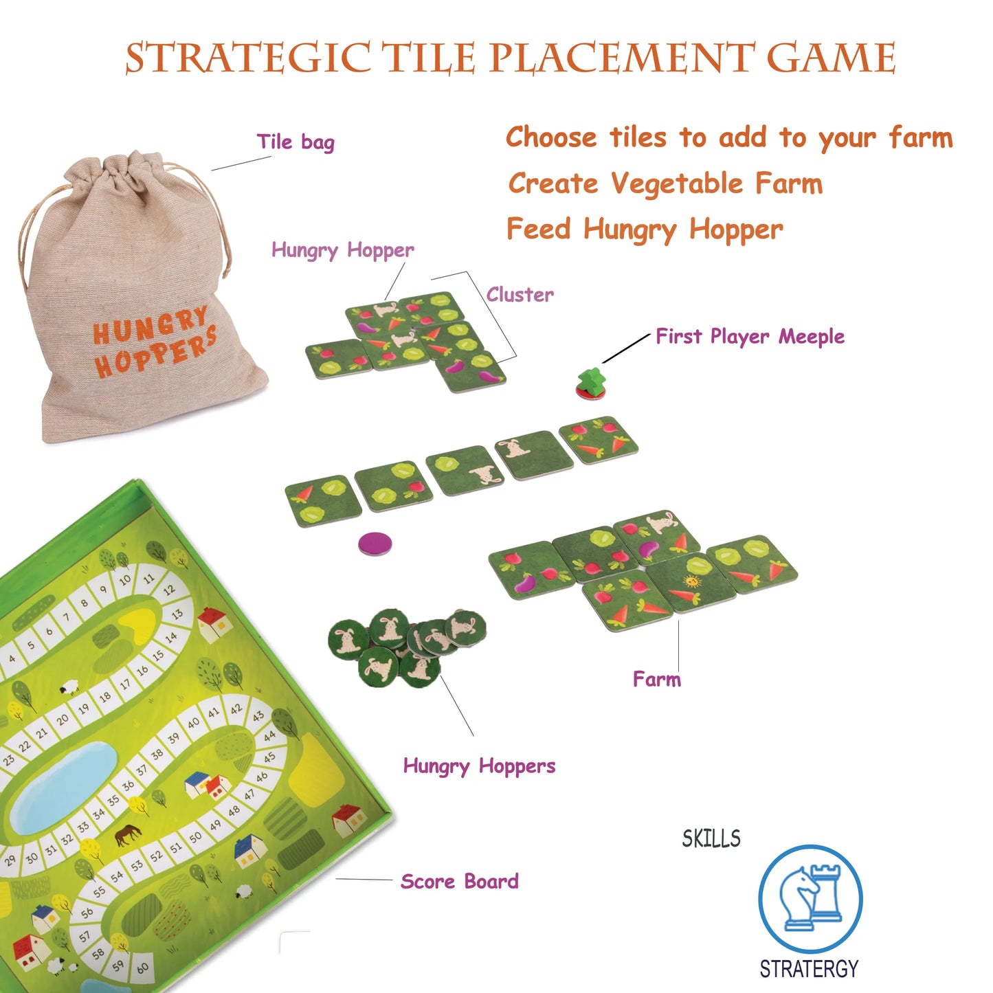 Hungry Hoppers | Family Strategy Board Game for Kids Ages 8+ | Fun Tile Placement Game