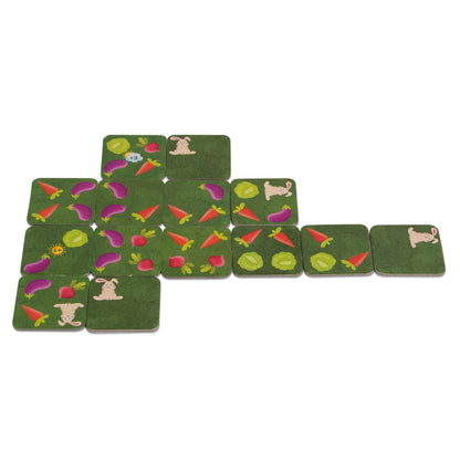 You, as a farmer, choose and build fields of vibrant vegetables for the Hungry Hoppers to eat. You devise cunning strategies to attract as many hoppers to your fields as you can. The weather fairy may also visit you and bestow beautiful weather, resulting in bonus harvests. So come along, join the other farmers on their quest to satisfy the ravenous appetites of the lovable hungry hoppers as you compete to score the most points.