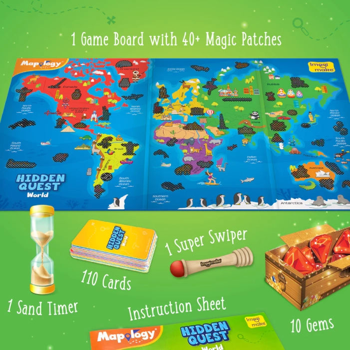 • SWIPE & REVEAL: This toys for kids has a special feature that some objects are hidden behind the magic patch on the board games for kids. The child can unleash the power of Super Swiper to reveal hidden treasures from around the world.