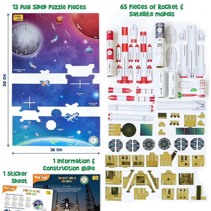 - DUAL SIDED PUZZLE: The activity set also includes a dual sided puzzle - one side represents space orbits while the other side of the puzzle represents fun facts like the fact that PSLV rocket created a World Record of putting 104 satellites on a single mission