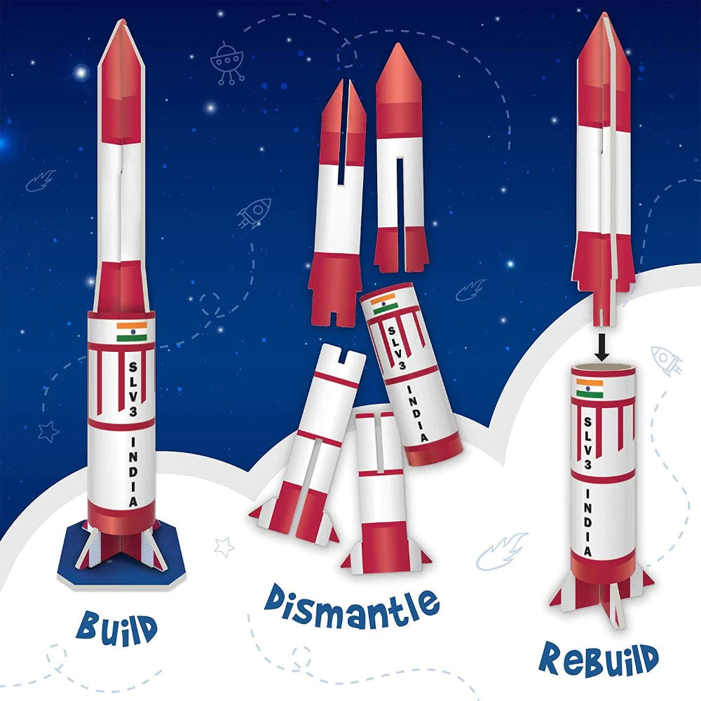 - ROCKETS & SATELLITES MODEL MAKING SETS: This activity set comes with 65 Rocket & Satellite model making pieces to make 4 successfully launched Rockets like RH75, SLV-3, PSLV and GSLV MKIII and Satellites like Aryabhata, Chandrayaan 1, Mangalyaan, the Vikram Lander and the Moon Rover (Pragyan)