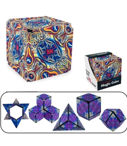 - Magic Cube with Many Shapes] This special magnetic cube can change into more than 70 different shapes. You can use your imagination to challenge yourself by making new shapes. It's a fun way to pass the time and be creative.