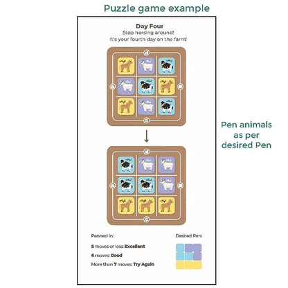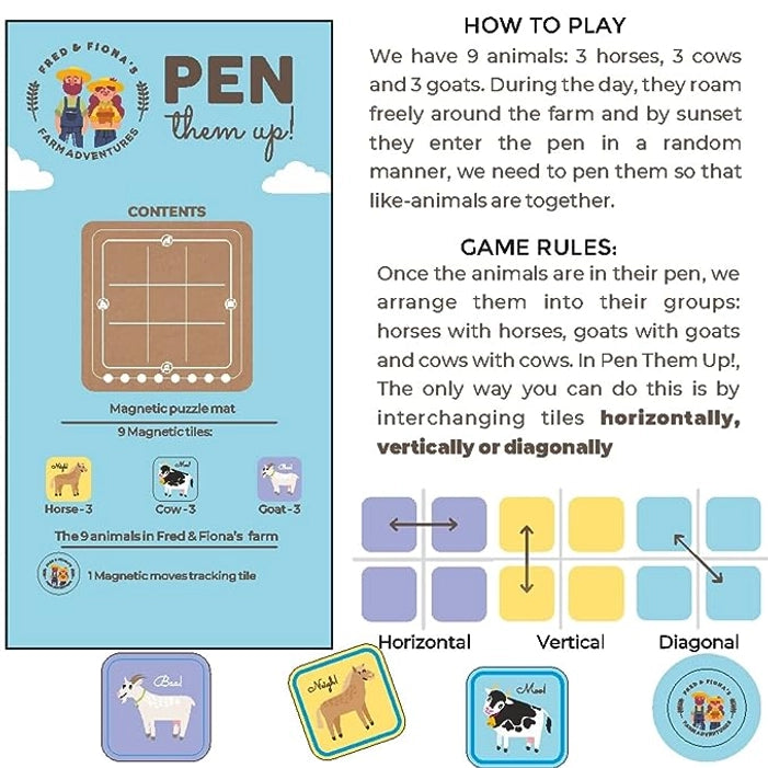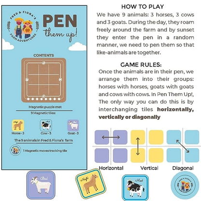 - The animals are represented in this challenging logic game by magnetic tiles and the pens are marked on a magnetic board.
