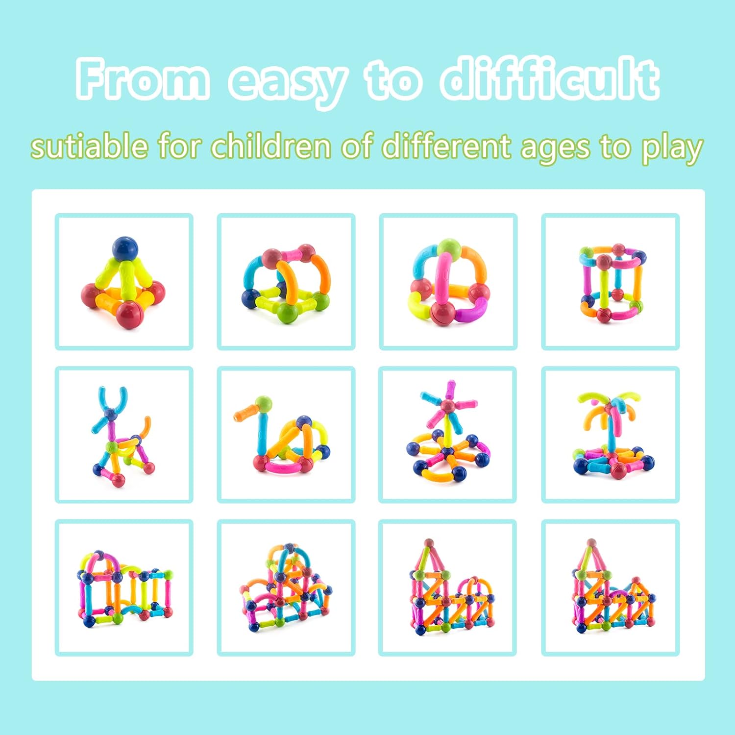 • 【Safe Material】The magnetic building sticks set is made of High-Quality ABS Plastic, Natural permanent magnets, all parts are larger than 3cm(1.18") and round edges make it safe for kids to play with. A good STEM toys for boys and girls, suitable for children 3 4 5 6 7 8 years old to develop intelligence, fine motor skill