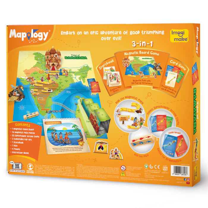 - INNOVATIVE GAMEPLAY & RETRACE LORD RAM'S JOURNEY: Gather your fellow Epic Adventurers and prepare to build the magnetic path through ancient India. Roll the dice to navigate events, gaining Superpower Arrows during good encounters and losing them in battles against evil. Each arrow possesses a unique superpower that will aid you in your quest. As you engage in the final showdown, your ultimate mission is to win Brahmastras and defeat the powerful Ravana