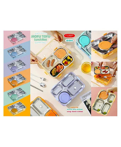 This stainless steel lunch box features four compartments, providing versatile storage options for a variety of foods. With a spacious capacity of 850 ml, it's perfect for packing hearty lunches, snacks, fruits, and more. The insulated design helps maintain the temperature of your food, keeping it hot or cold for longer periods. Whether you're headed to work, school, or a picnic, the Mofu Tofu Lunch Box ensures your meals stay fresh and flavorful.