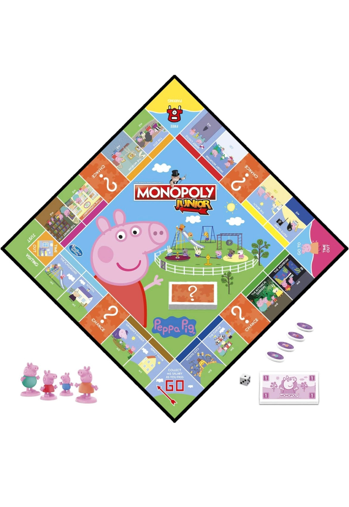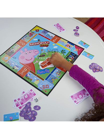 - PEPPA PIG THEME: Learn to earn with Peppa and her family! In this Monopoly Junior board game, kids can imagine being part of the happy and fun world of Peppa Pig