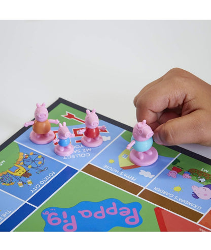 - PEPPA PIG GAMEBOARD: The gameboard features delightful artwork and locations that kids will recognize such as Peppa's House, Playgroup, Grandpa Pig's Garden, The Funfair, Potato City, and more