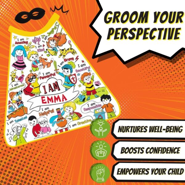 EDUCATIONAL FUN: The My Affirmations Cape Kit is not only entertaining but also has educational benefits. Coloring is a great way for children to develop their fine motor skills, hand-eye coordination, and concentration. Furthermore, the positive affirmations in the kit can be used to boost children’s self-esteem and encourage a positive mindset.