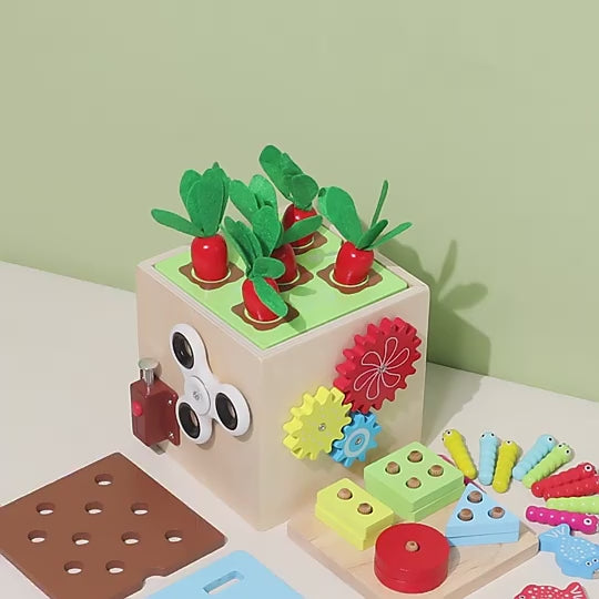 Educational Children 9 In 1 Multi-Functional Fishing Board Lacing Shoes Toy Color Matching Wooden Busy Box