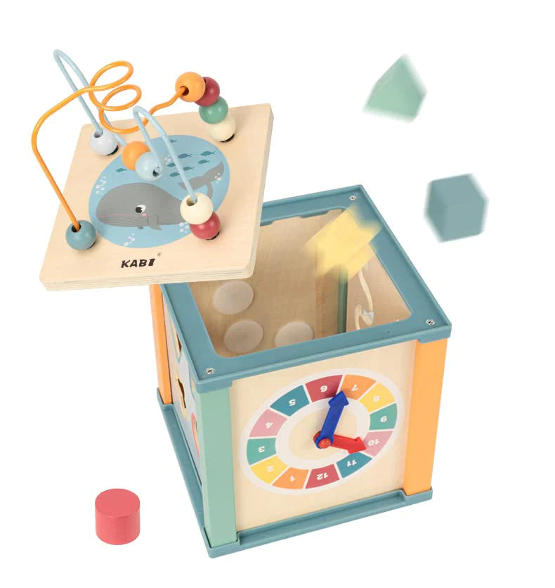 Ocean 5 In 1 Activity Cube Wooden Bead Treasure Box And Beads Toys - Multicolor