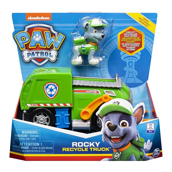 Paw Patrol, Rocky's Recycle Truck Vehicle with Collectible Figure, Vehicle and Pup