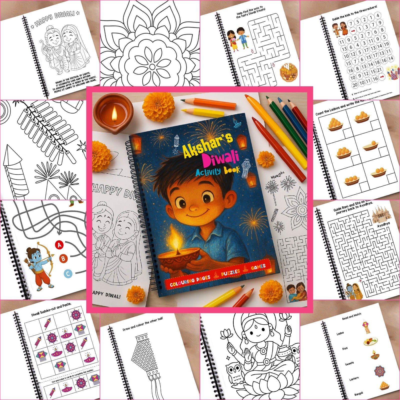 Introducing our Diwali Special Kids Activity Book – packed with fun puzzles, coloring pages, exciting games, and brain teasers! 🪔🎨🧩