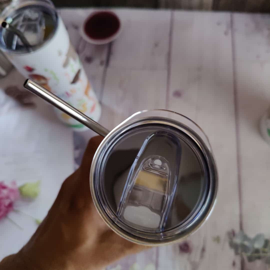 Material: Double-walled vacuum insulated stainless steel structure, with clear plastic lid and stainless steel straw