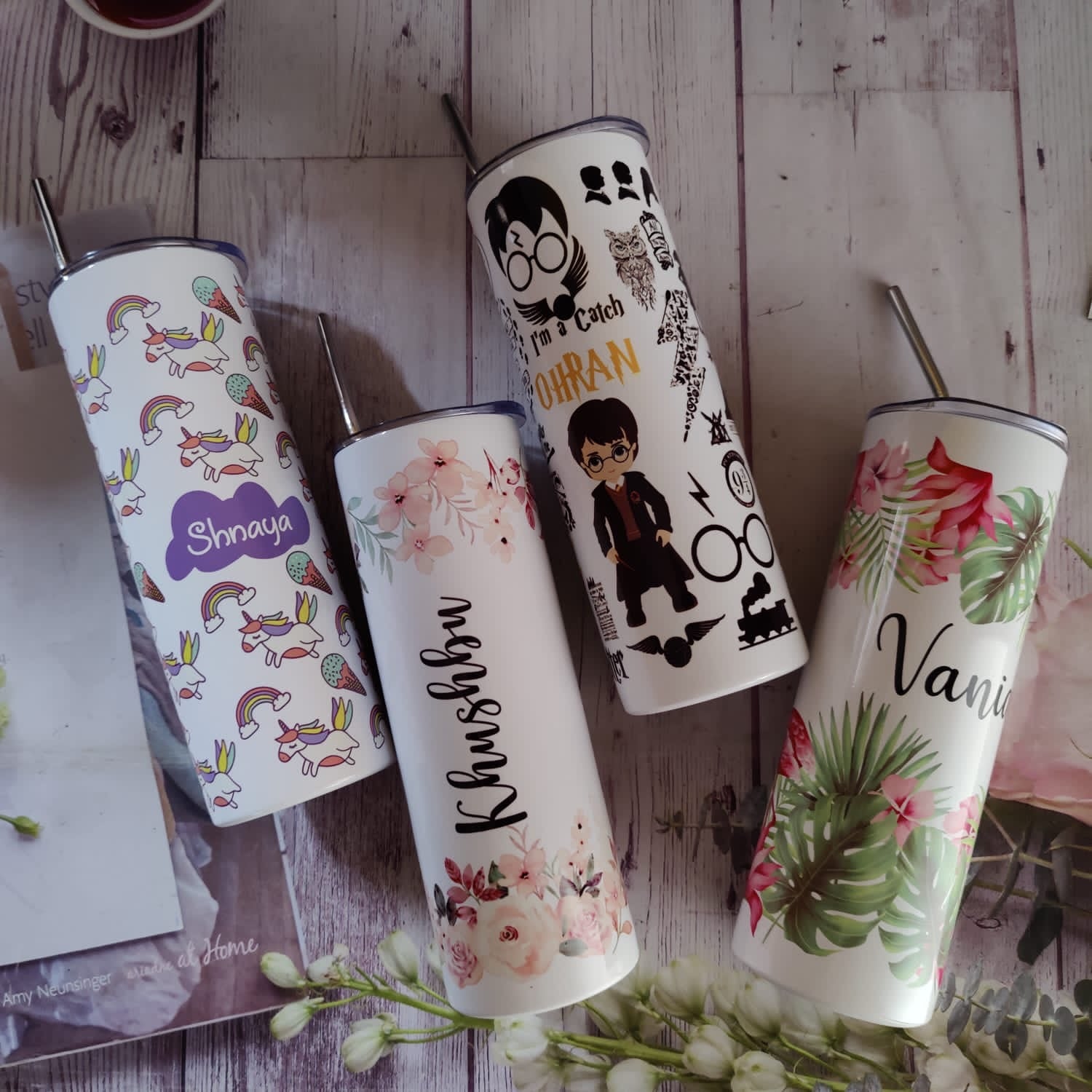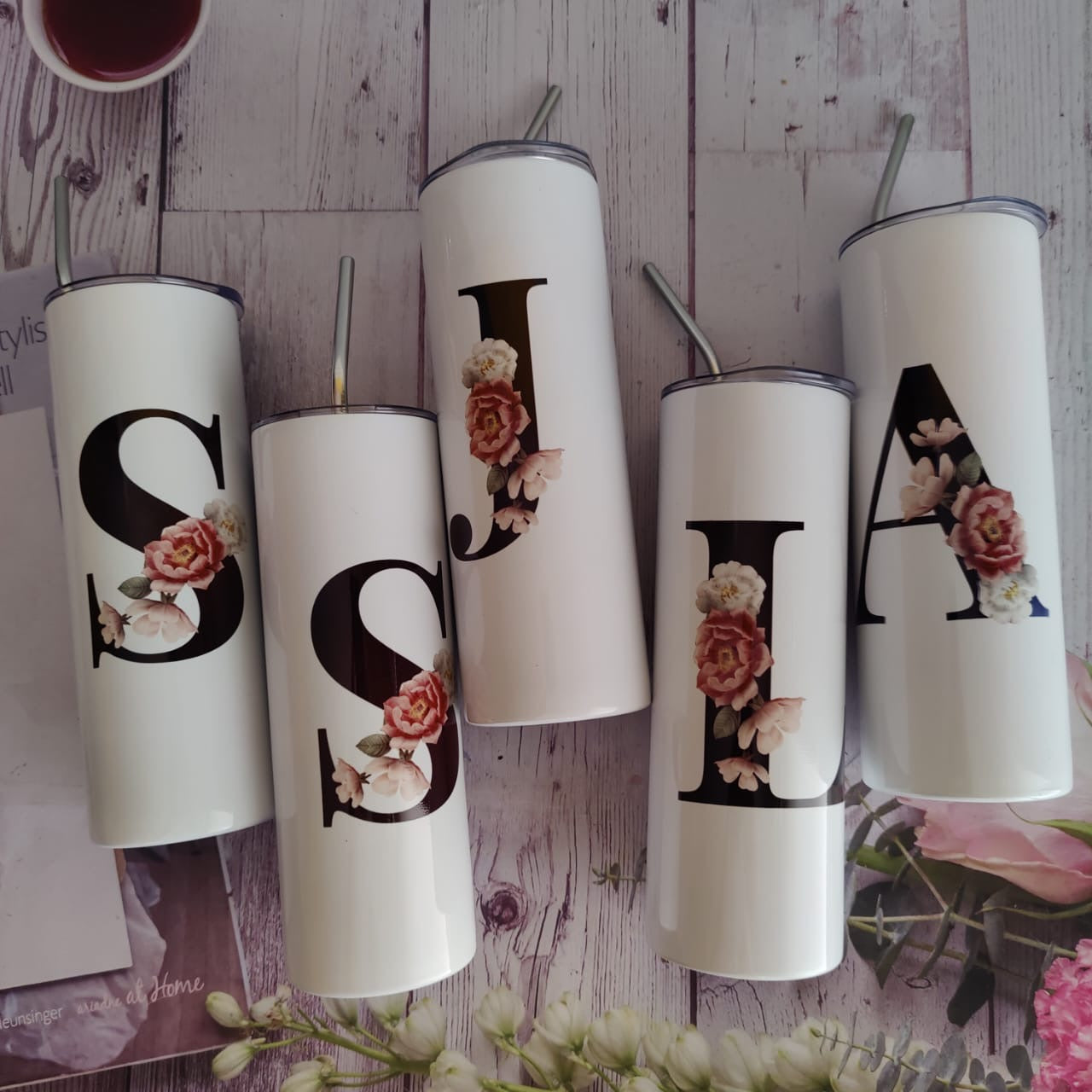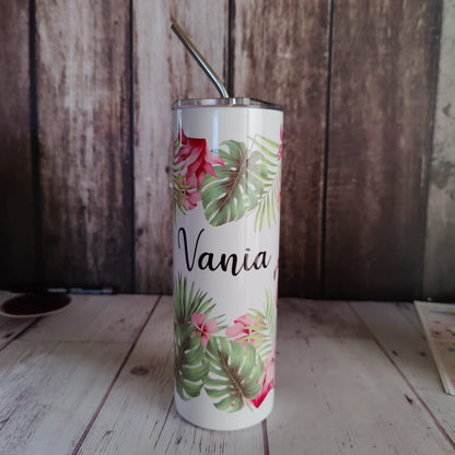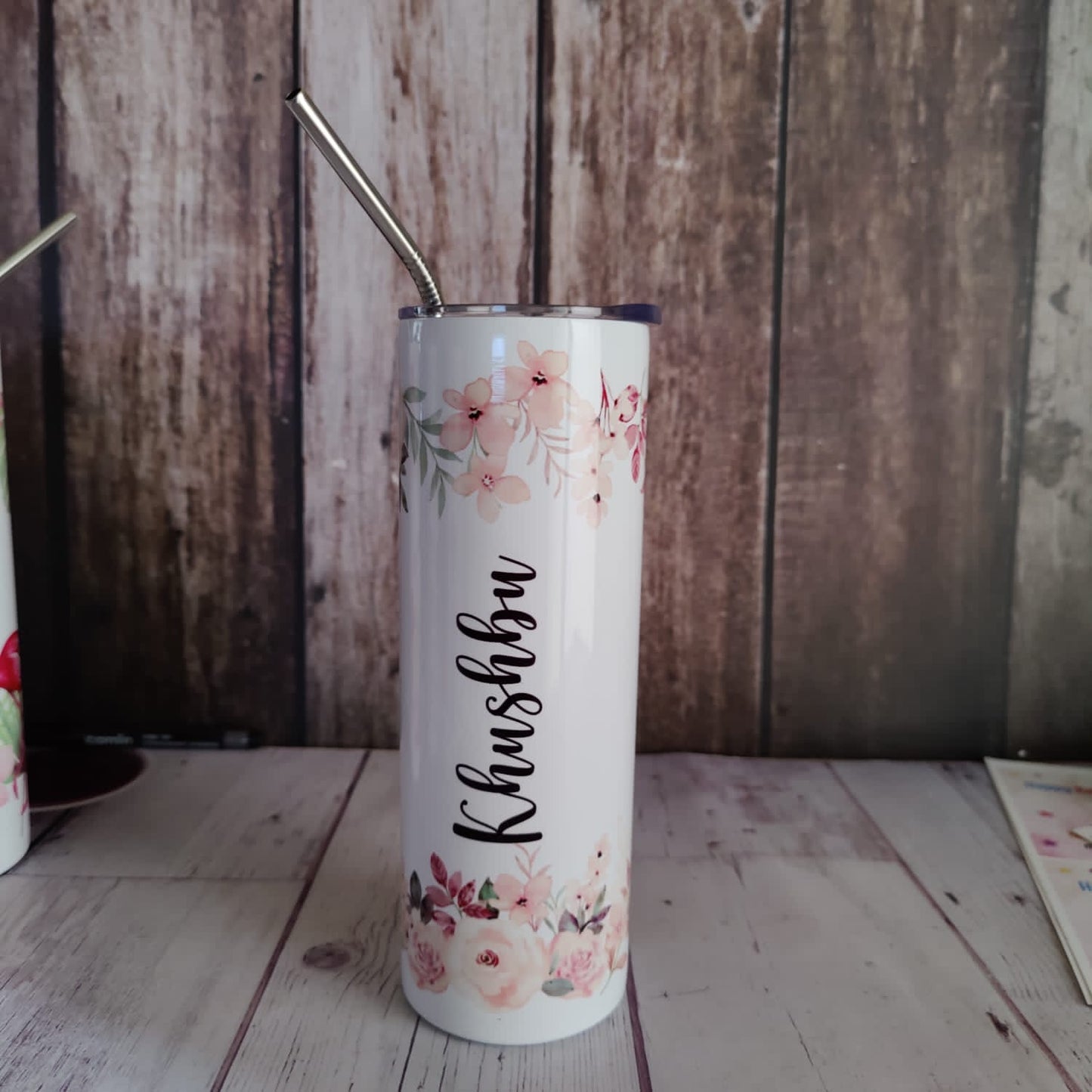 *Personalised special Stainless Steel Skinny Tumbler with steel Straw*