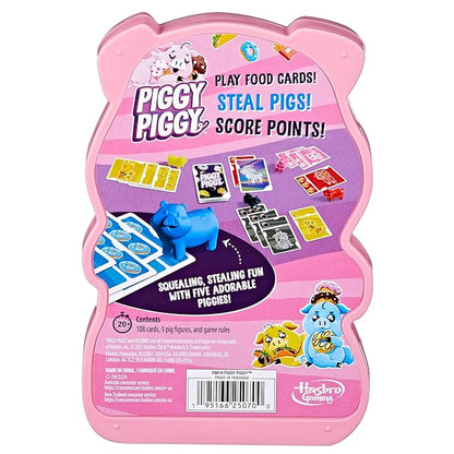 - SQUEALING, STEALING FUN FOR THE WHOLE FAMILY: The Piggy Piggy card game is fast-paced fun with 5 adorable pig figures! Play food cards to try to steal pigs and be the first to score 8 points to win