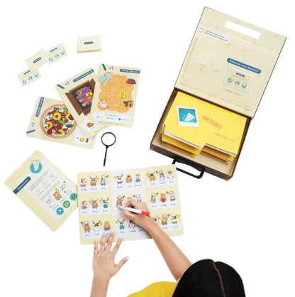 - Activity kits to develop reading, comprehension, and fine motor skills through hands-on play.