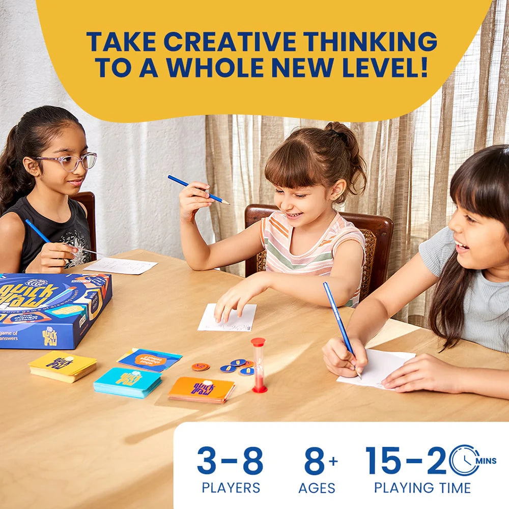 FAST-PACED DRAWING GAME: Binca Fletter Quick Draw is a fast-paced and hilarious drawing game that brings endless fun to family game nights. Simple to learn but challenging to master, this doodling game assures creative thinking, endless laughter, and friendly competition for both kids and adults