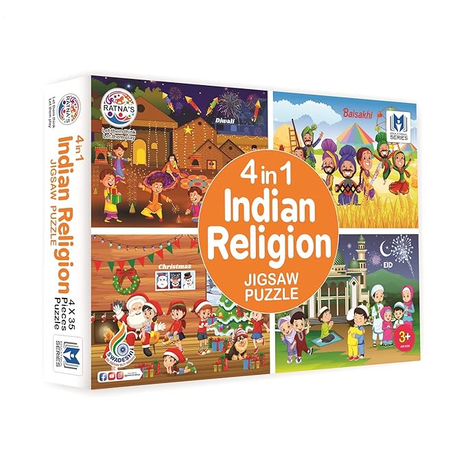 Ratna's 4 in 1 Indian Religion Jigsaw Puzzle (4 x 35 Pieces) for Kids