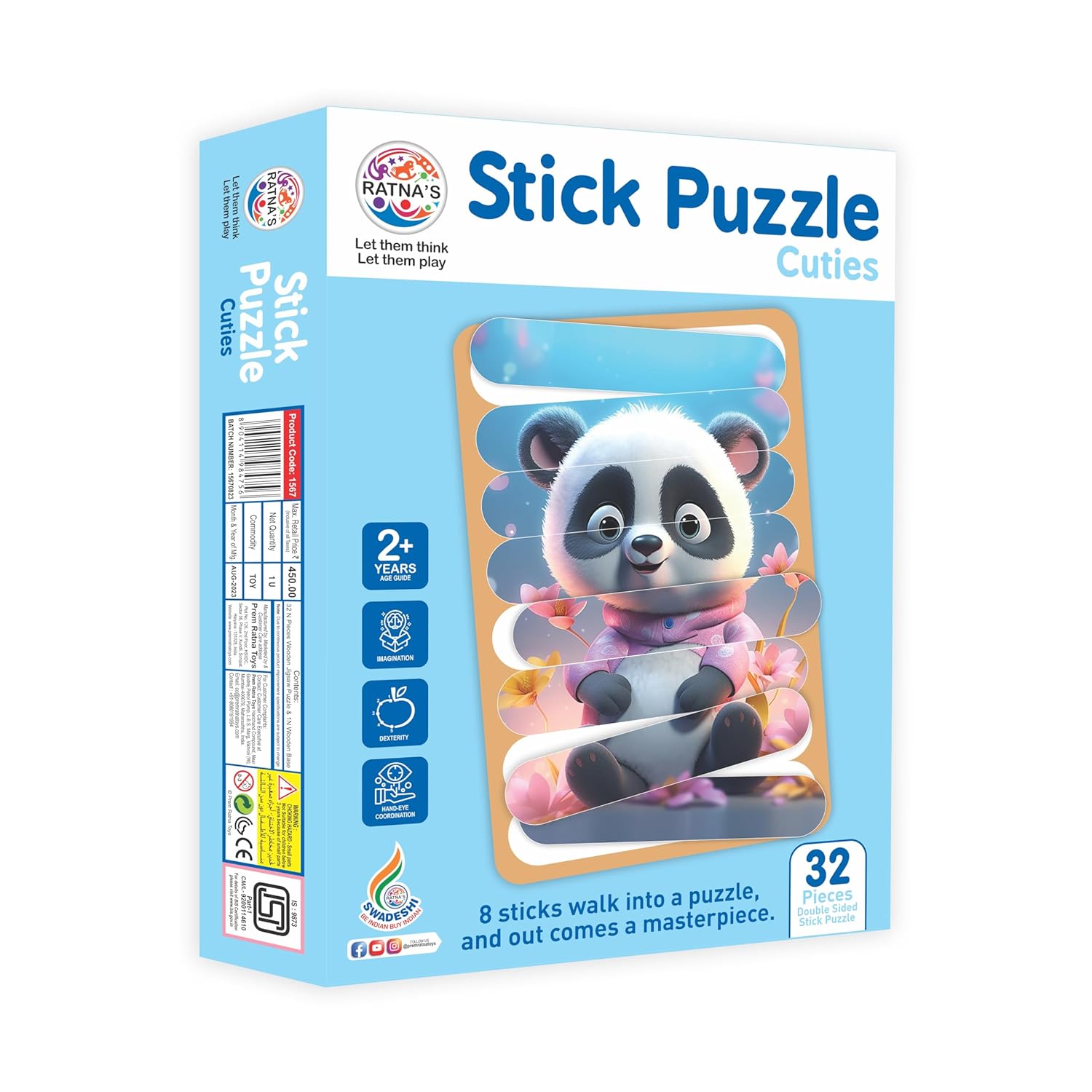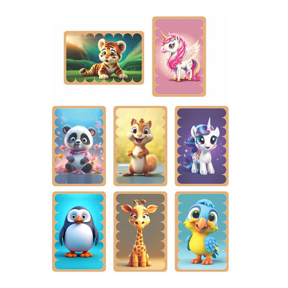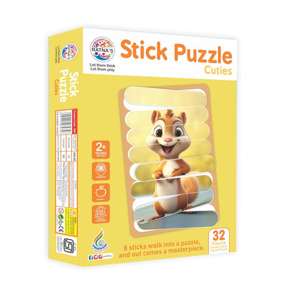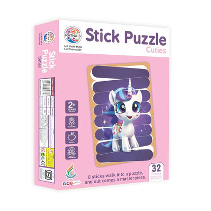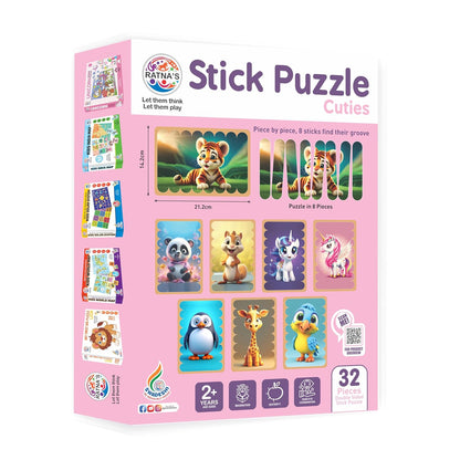 Ratna's Stick Puzzle Cuties Pack of 8 Framed Puzzles, 32pcs Double Sided Wooden Stick Puzzles Educational Toy for Kids 2+ Years