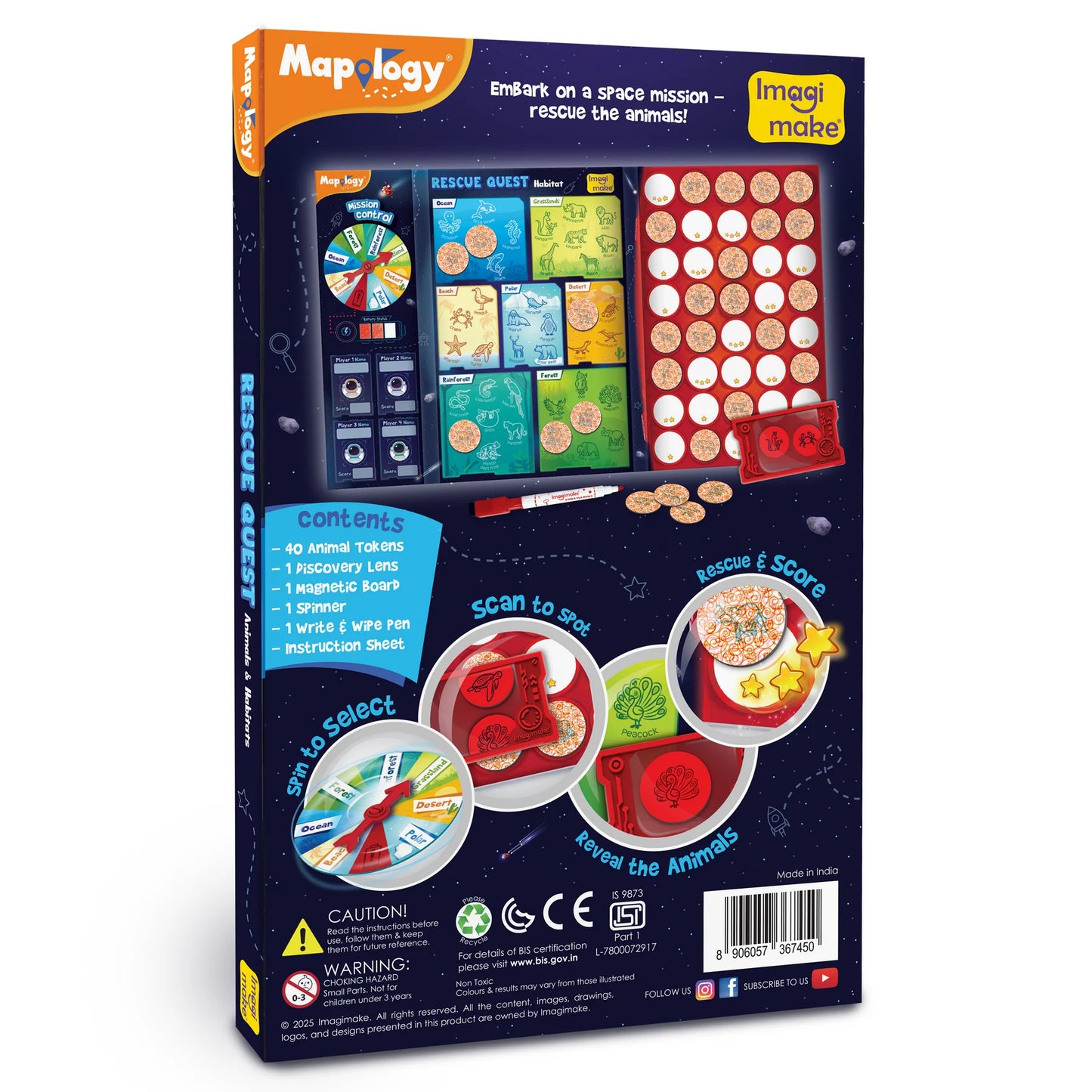 - What you Get: 1 Magnetic Board, 1 Spinner, 1 Discovery Lens, 1 Write & Wipe Marker, 40 Animal Tokens and Instruction