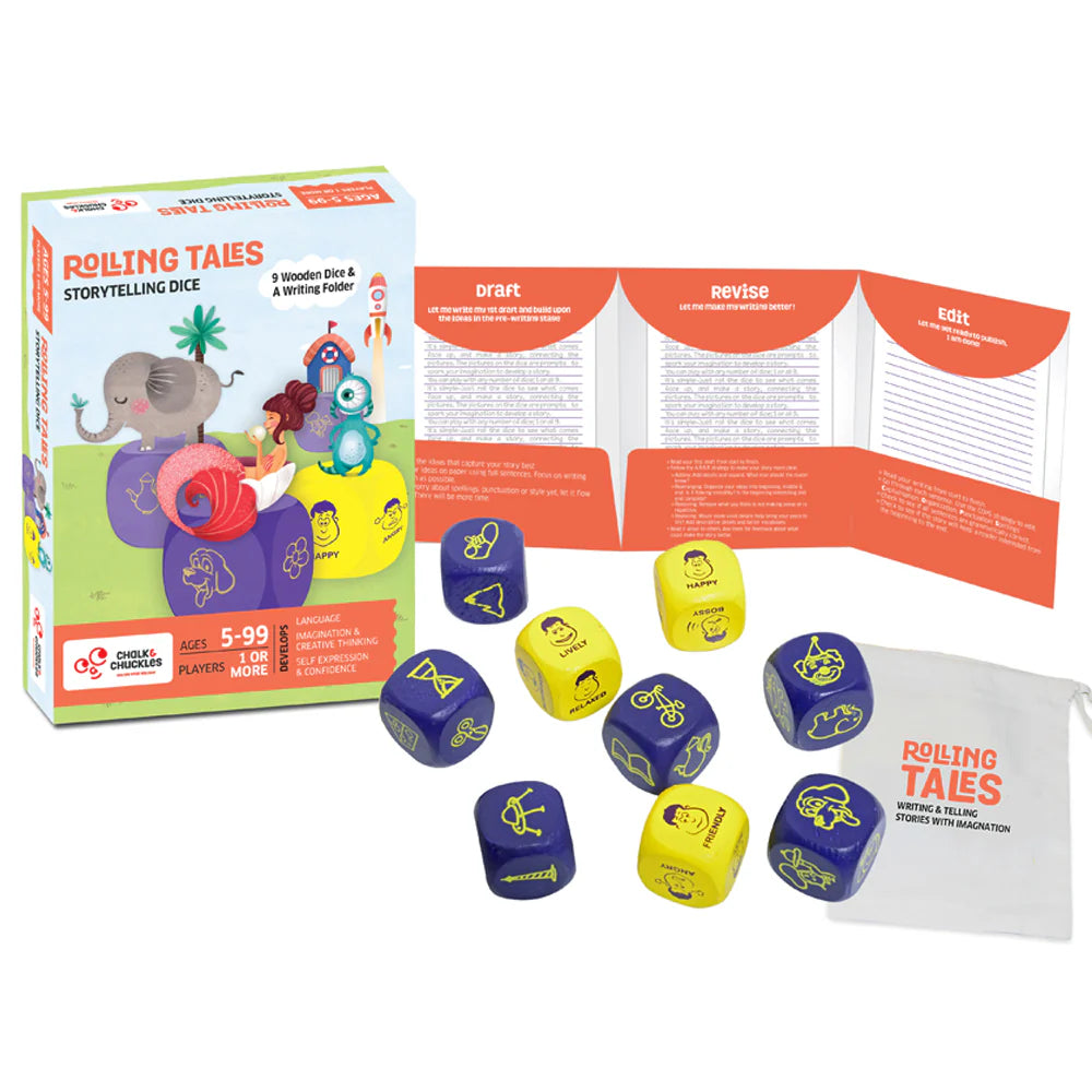 Help children develop storytelling skills and oral language with Rolling Tales. Each dice has picture clues to help you get started. Play with one or all of them to create unique tales.